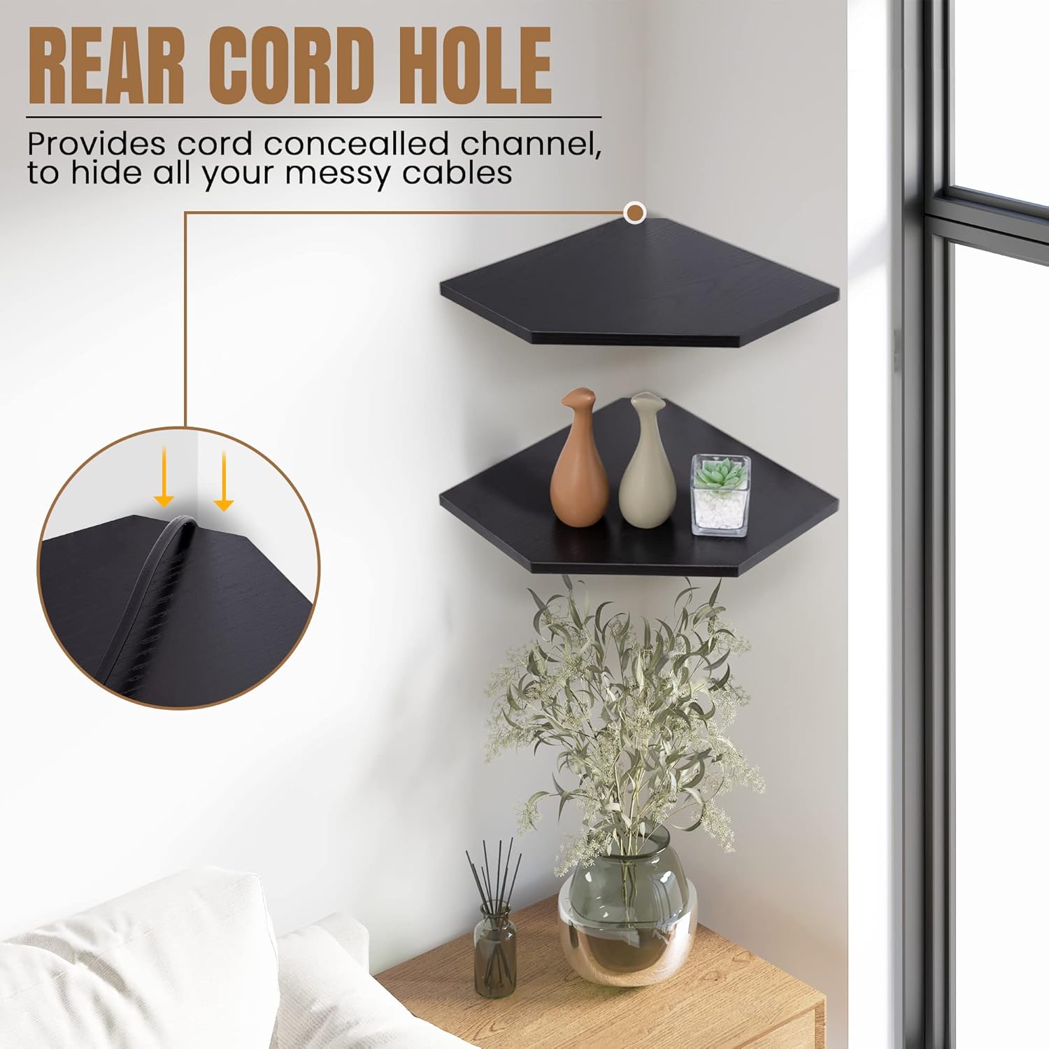 - ăSturdy Corner Floating Shelvesă Our Set of 4 Wooden Corner Shelf Wall Mounts are crafted with premium quality, heavy-duty composite wood making them incredibly durable, mildly waterproof, easy to wipe clean, and environmentally friendly. These corner shelves have been designed to withstand high weight-bearing capacity and can support up to 22 pounds for each tier, making them the perfect solution for all your storage needs