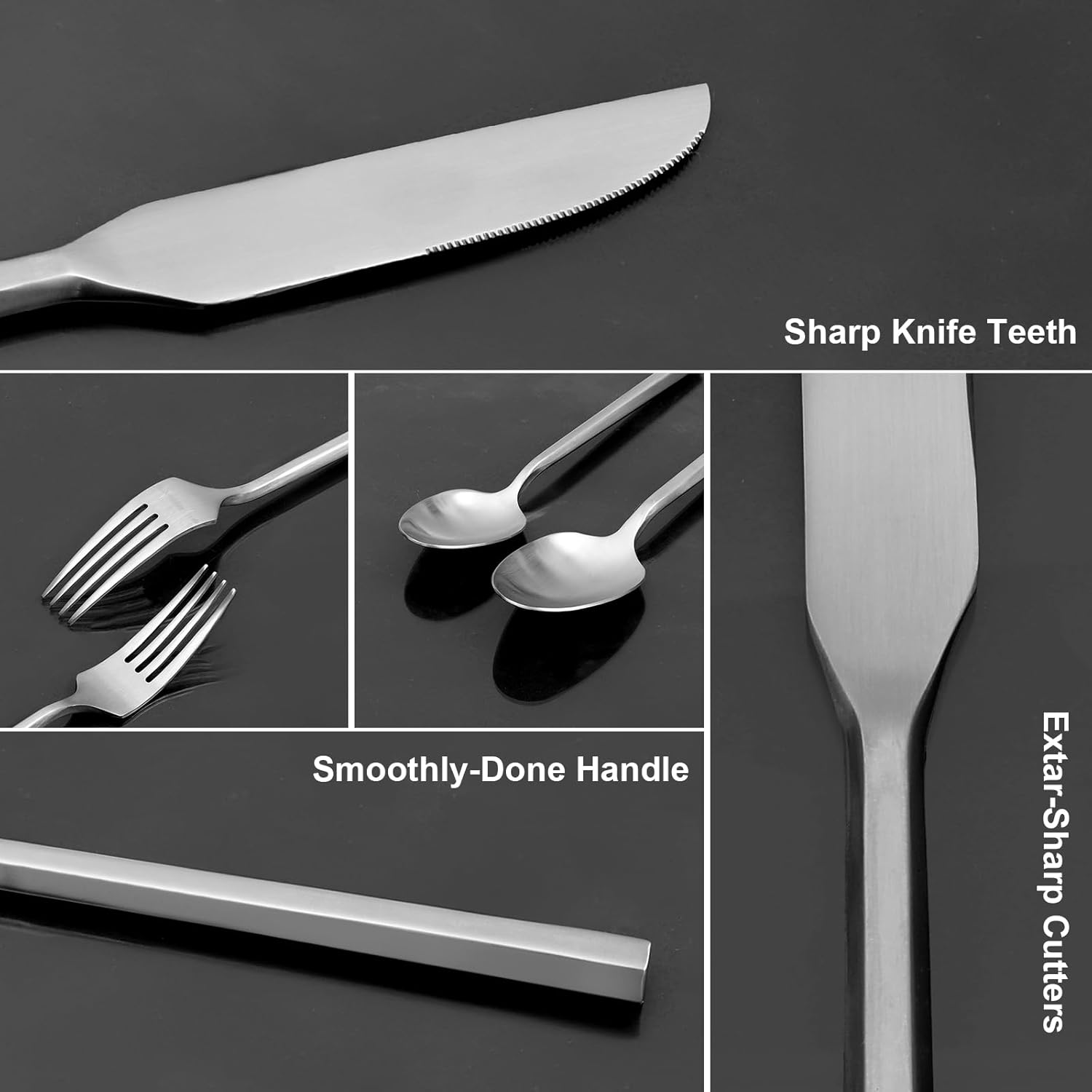 20 Piece Stainless Steel Silverware Set, Handle Flatware, Modern Matte Finish Cutlery Set, Service for 4, Dishwasher Safe