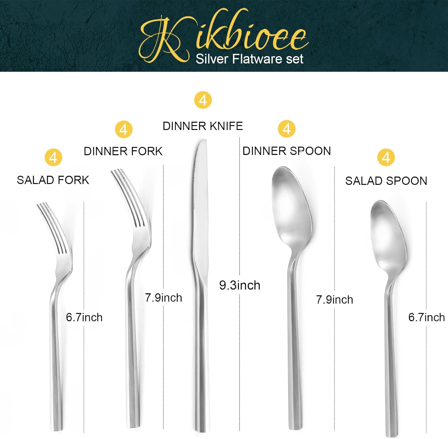- ă20-PIECE SILVERWARE FOR 4ă:20pcs stainless steel silverware set comes with 4 dinner forks, 4 dinner spoons, 4 dinner knives, 4 teaspoons and 4 salad forks.