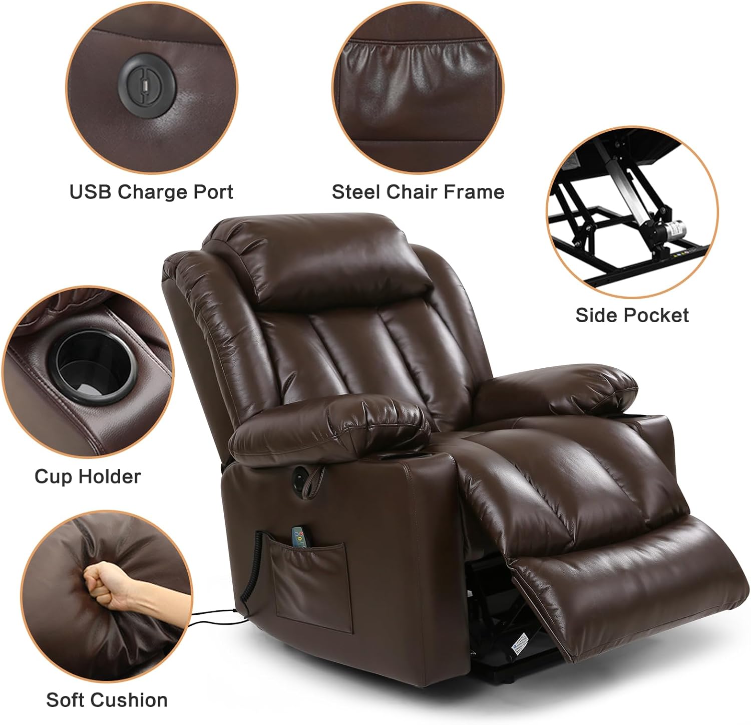 - [Additional Features] - This chair has many wonderful functions. Charge your electronic devices anytime with the 2 USB charge ports while keeping small items close at hand with the pockets on both sides of the armrest. The 2 cup holders cater to your daily beverage needs. The extension footrest allows you to stretch and fully relax while indulging in activities like reading, sleeping, or watching TV. Control all functions of the chair with the convenience of the included remote control.