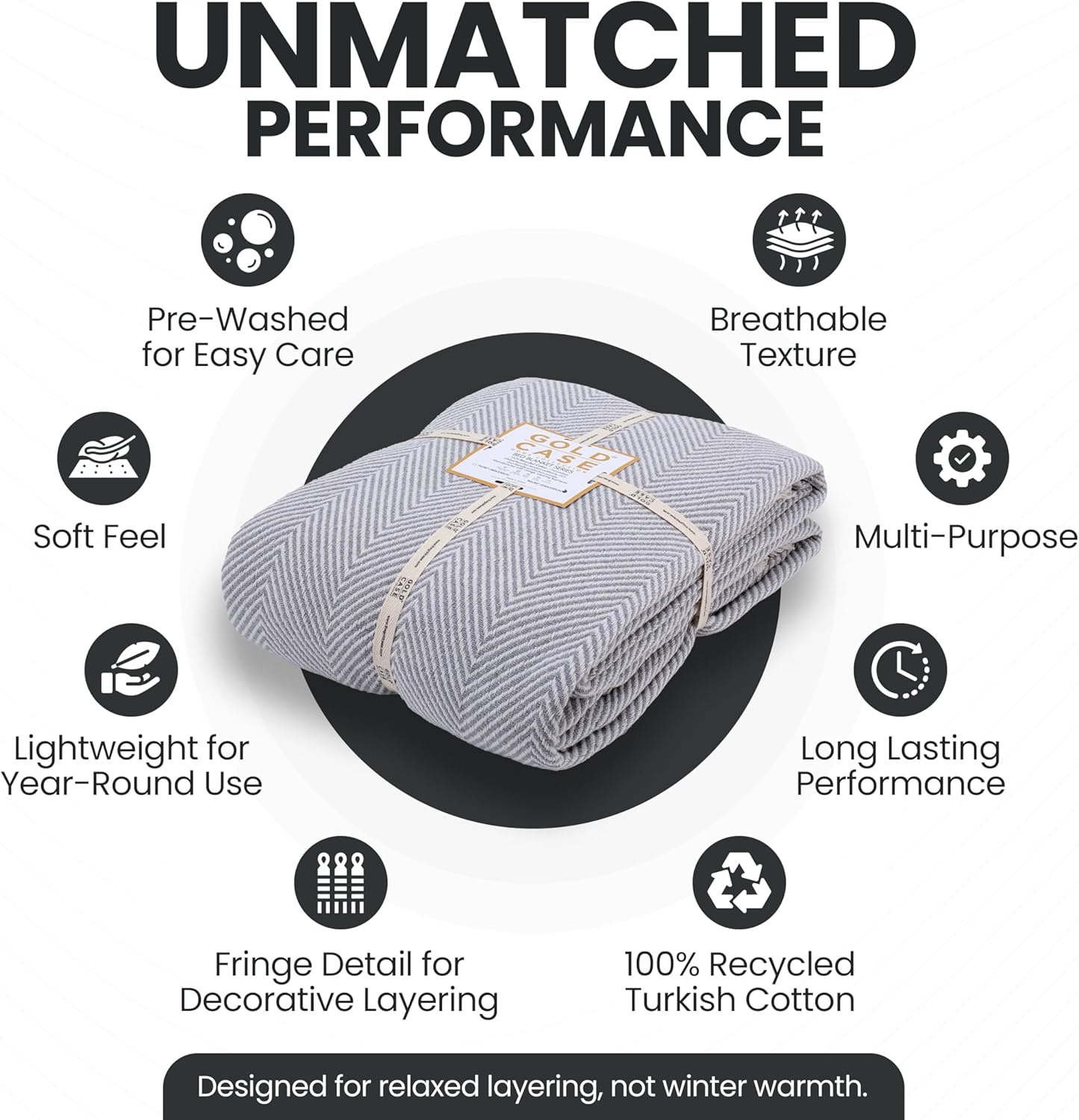 Gold Case Throw Blanket for Bed – 100% Recycled Turkish Cotton Bed Blanket – Decorative Throw Cotton Blankets for Living Room & Bedroom – Elegant Grey Woven Queen Blankets – 90x90