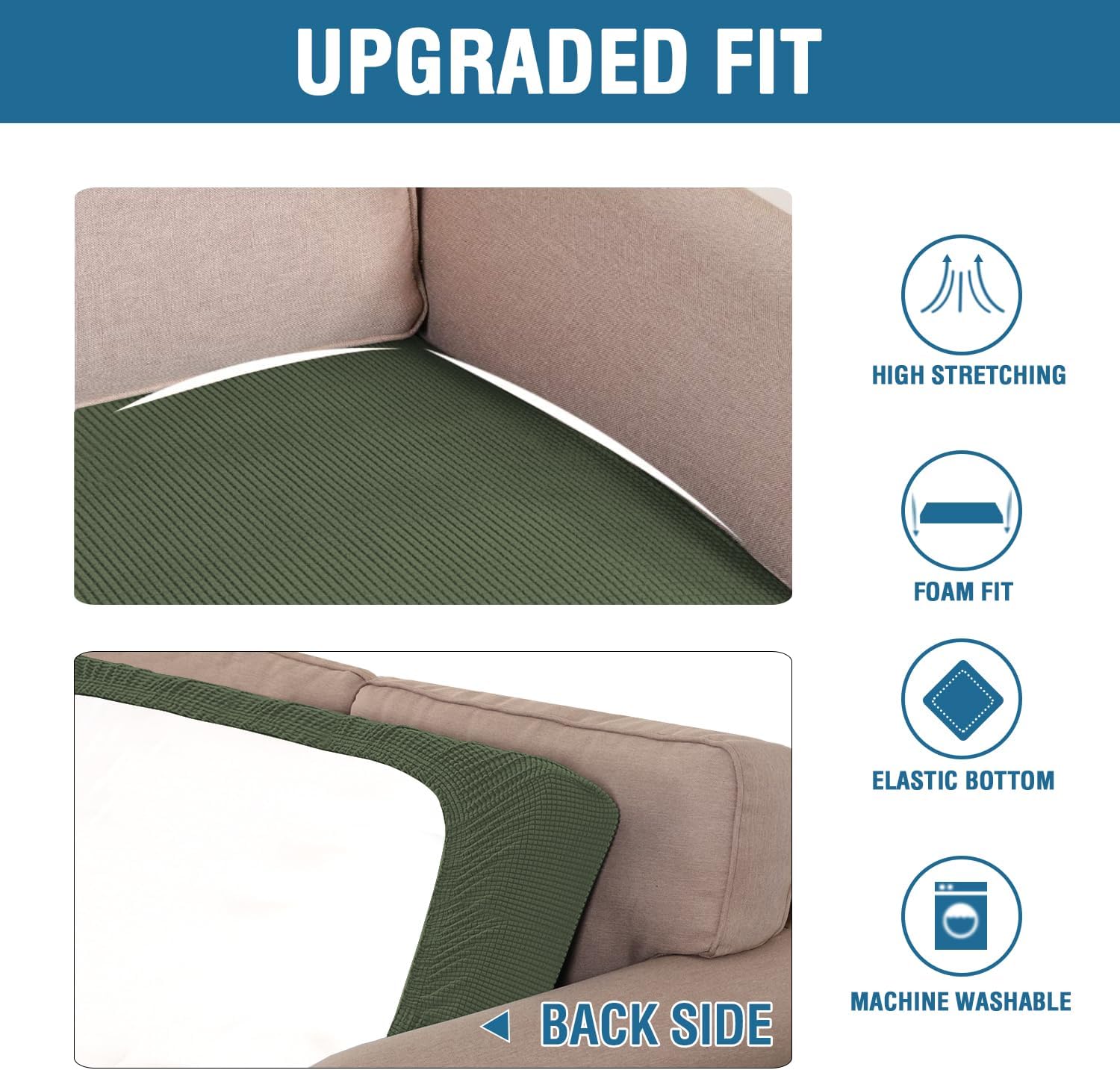 H.VERSAILTEX Super Stretch Individual Seat Cushion Covers Sofa Covers Couch Cushion Covers Slipcover Sets Thick Jacquard Textured Twill Fabric (1 Piece Loveseat Cushion Cover, Bronze Green)