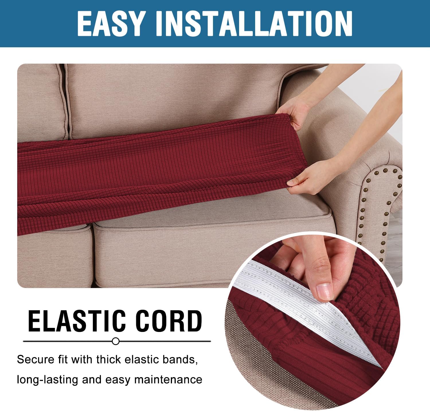 - NON SLIP: Effortless for installation (guide photos on selling page), sewn with thick elastic loops to cover the bottom edges. It is easy to install and take off, making your home more harmony, high recommended for both leather and cloth furniture