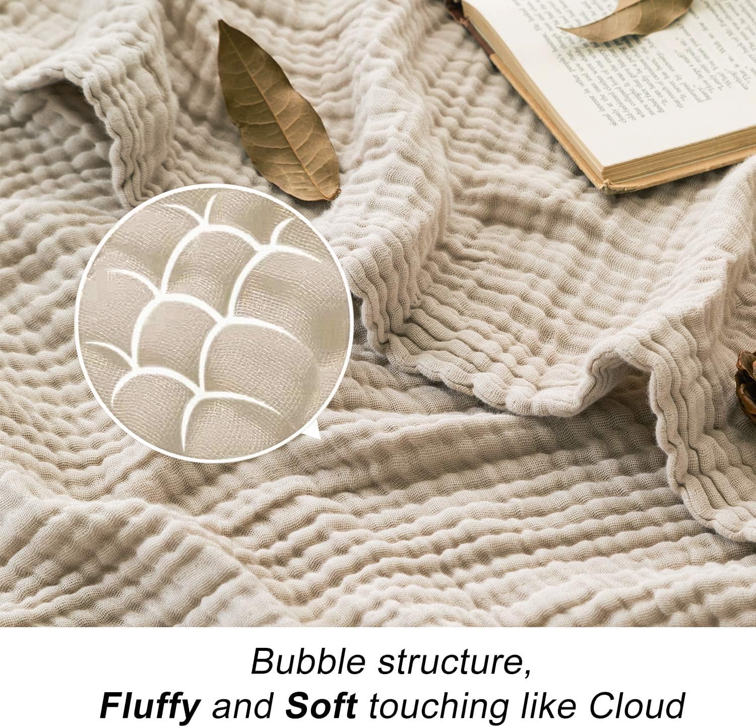 - GENEROUS SIZE FOR MULTIPLE APPLICATION: Measuring 50"x60", our muslin blanket for couch is perfect for snuggling in whether in the living room or on bed. What's more, you can share it with your family to enjoy happy hours together.
