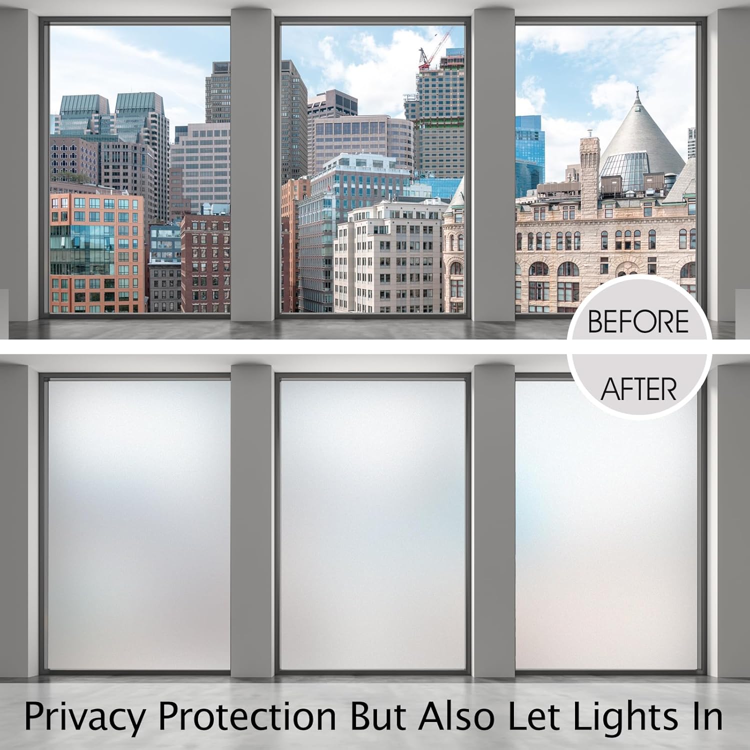 - ECONOMICAL FOR MULTI-SCENARIOS: No need to use heavy and expensive curtains or blinds, the glass frosting film is suitable for any FLAT, CLEAN, and SMOOTH glass door, window surfaces in the Bathroom, Balcony, Living Room, Bedroom, kitchen, balconie, cabinet, office, hotel etc. Note: Double-paned glass, cut glass and all processed glass is not workable for this frosted window film.