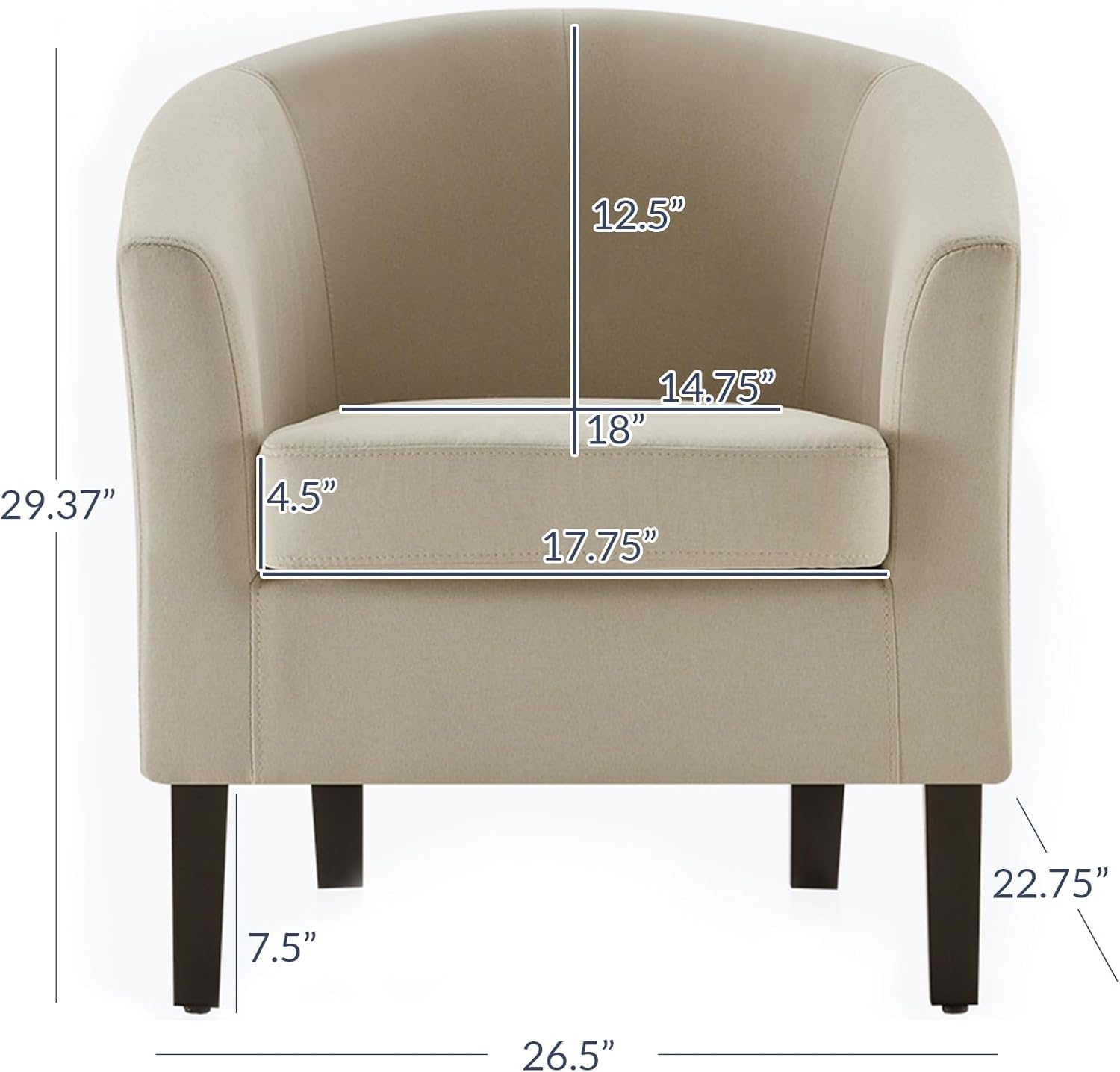 - [EASY TO ASSEMBLED] Set up will take under 5 minutes and all hardware is included. Once fully-assembled, the overall dimensions are 22.75"D x 26.5"W x 29.37"H and this club chair can support up to 300 pounds.