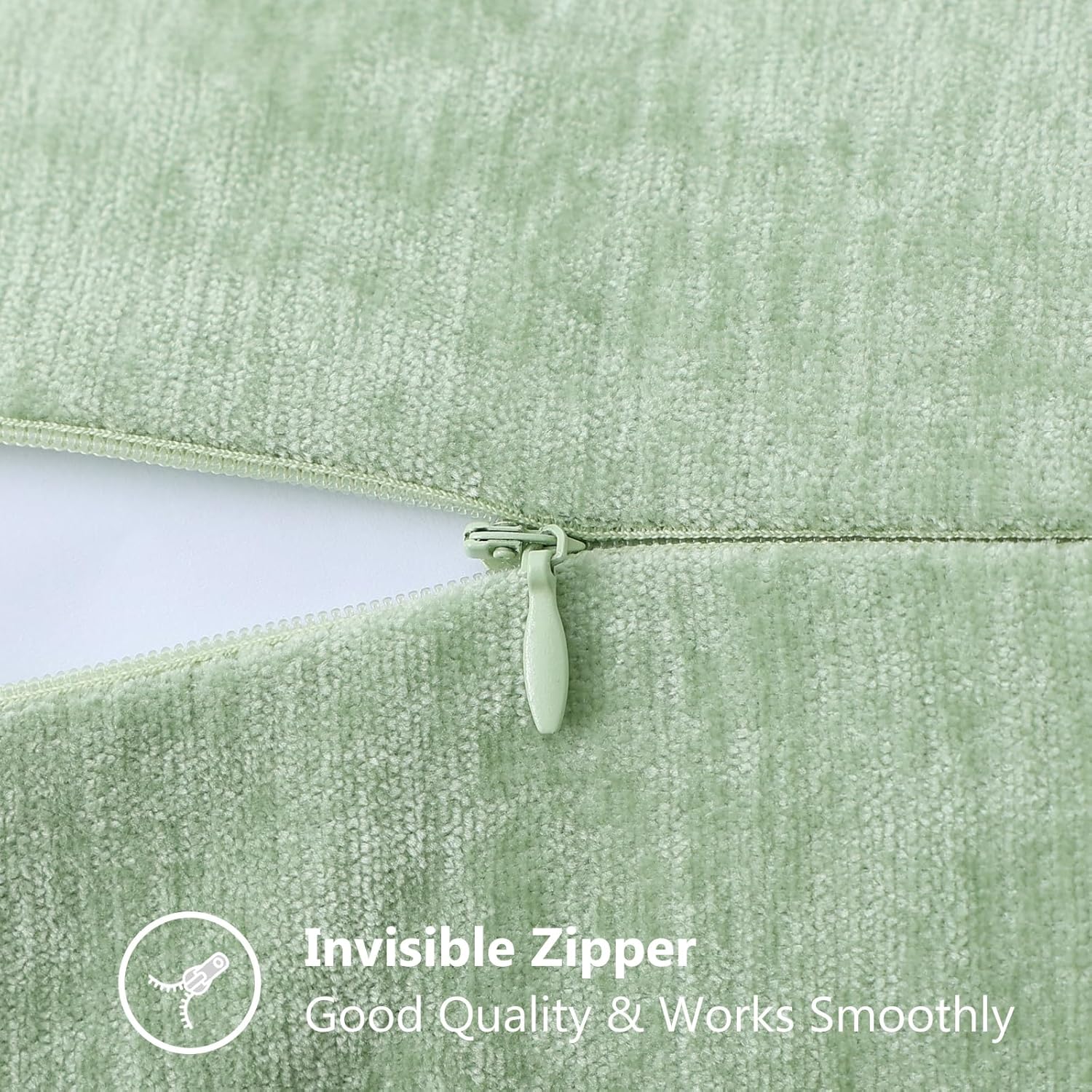 decorUhome Chenille Soft Throw Pillow Covers 24x24 Set of 2, Farmhouse Velvet Neutral Decorative Euro Pillow Covers with Stitched Edge for Couch Sofa Bed Home Decor, Sage Green