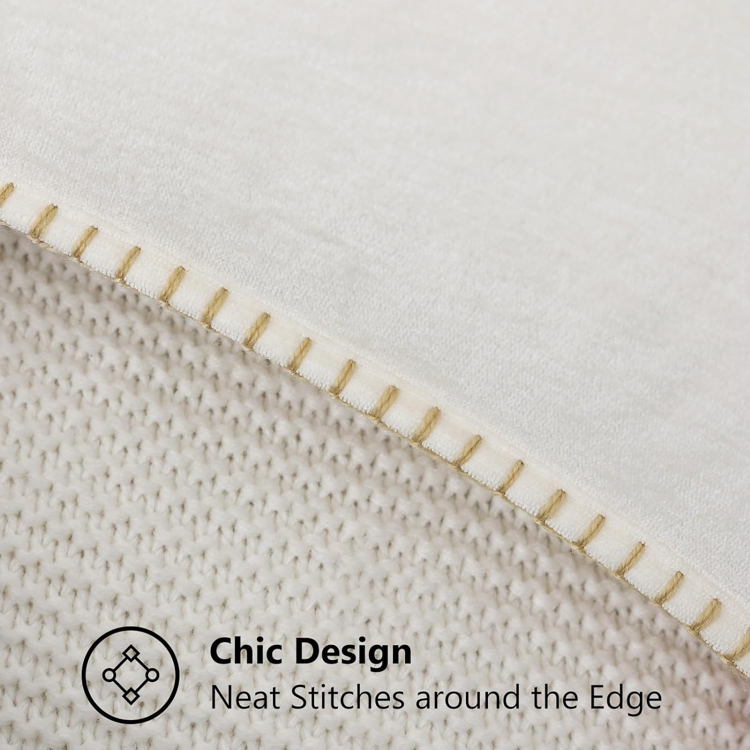 decorUhome Chenille Soft Throw Pillow Covers 16x16 Set of 2, Farmhouse Velvet Neutral Decorative Euro Pillow Covers with Stitched Edge for Couch Sofa Bed Home Decor, Cream White