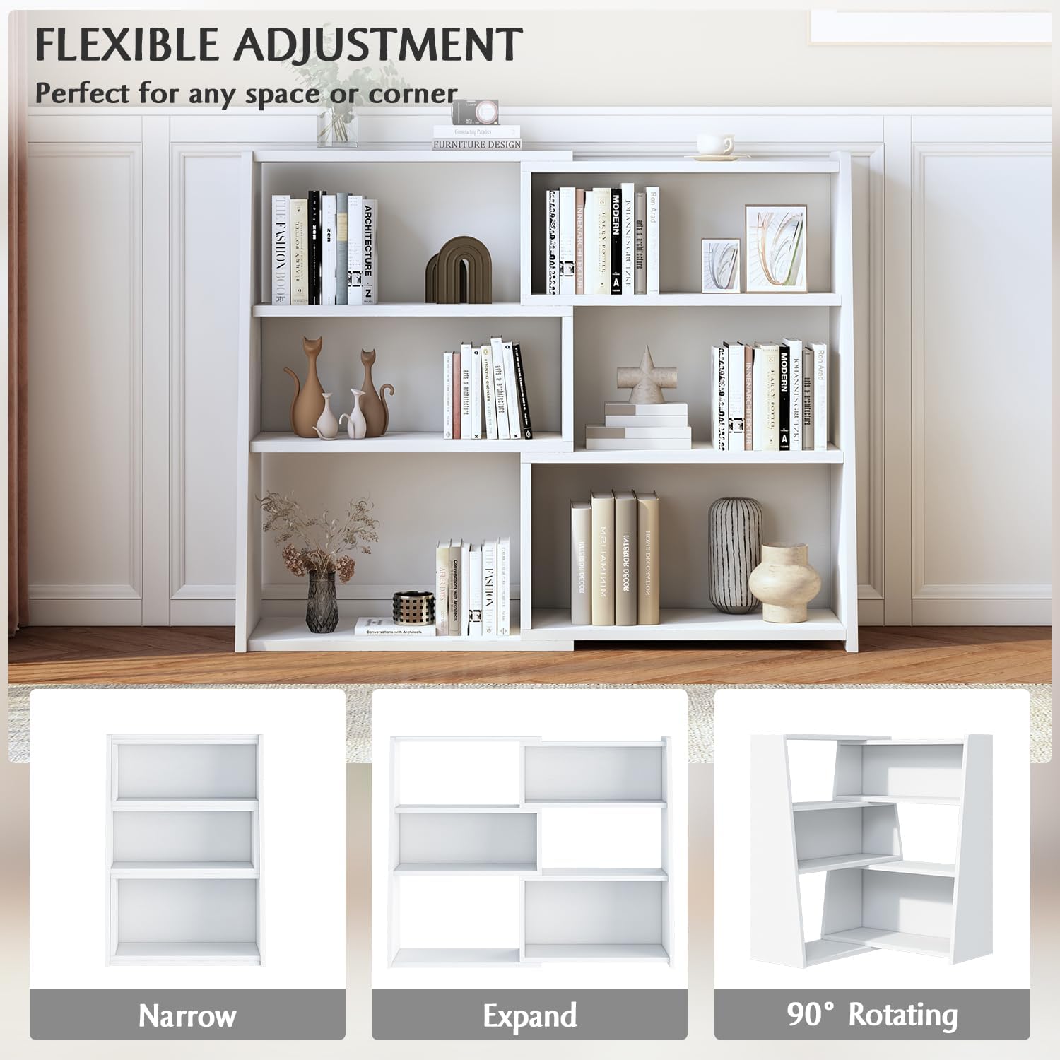 - MODULAR DESIGN: This unique bookshelf offers you ultimate flexibility in a creative way. It consists of 2 parts that you are free to lengthen, shorten, or put together at any angle you choose to fit any space or corner in your home;