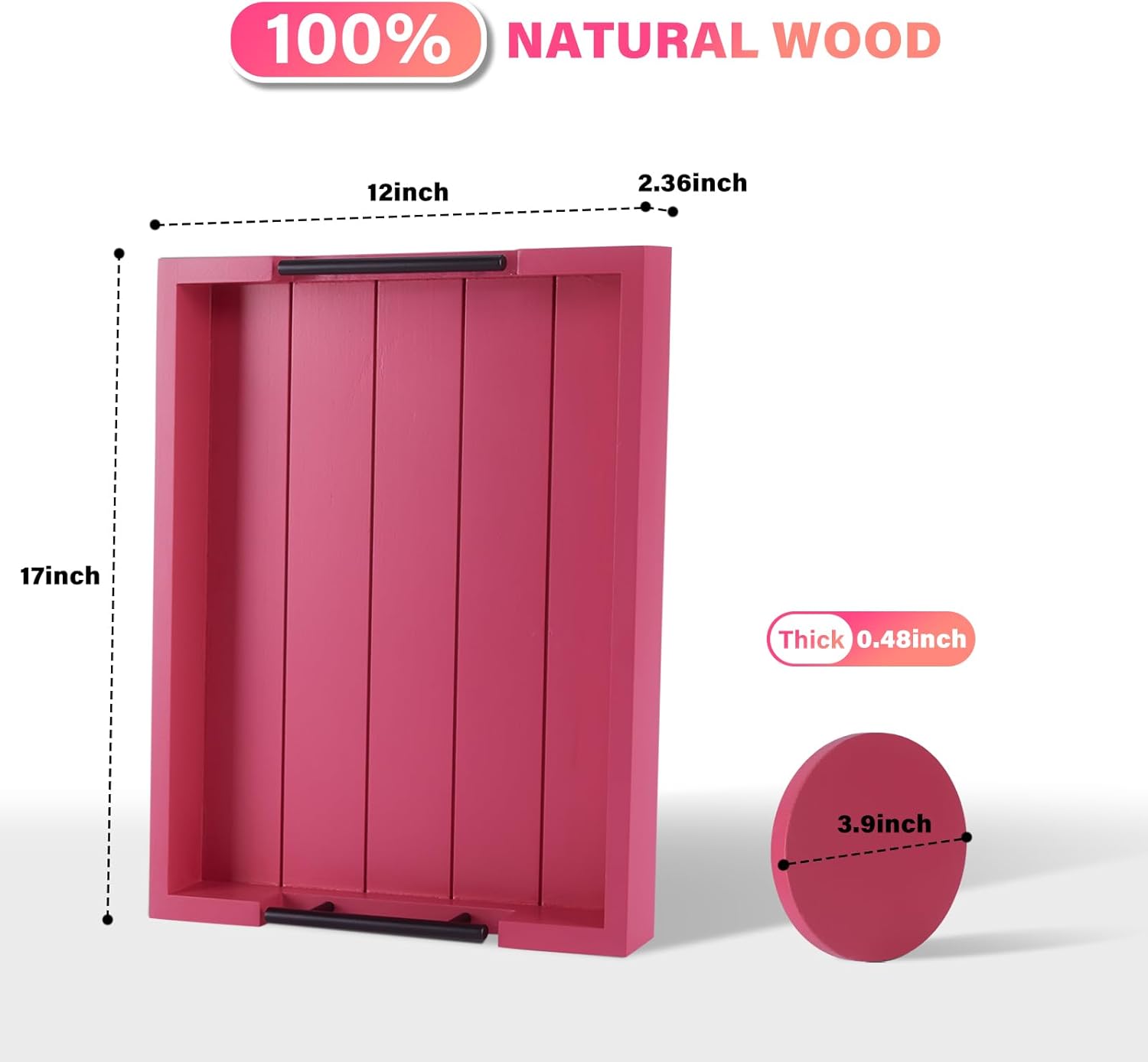 - BEAUTIFUL HANDCRAFTED DESIGN – Carefully crafted from premium quality fir wood with fine attention to details, our wooden serving tray set or tray for ottoman coffee table has ergonomically fitted metal handles for ease of carrying. Measuring 17”x 13”, this wood serving tray (rectangle) is the ideal size to carry snacks, drinks, and meals around the house without any hassle - WONDERFUL home decor!