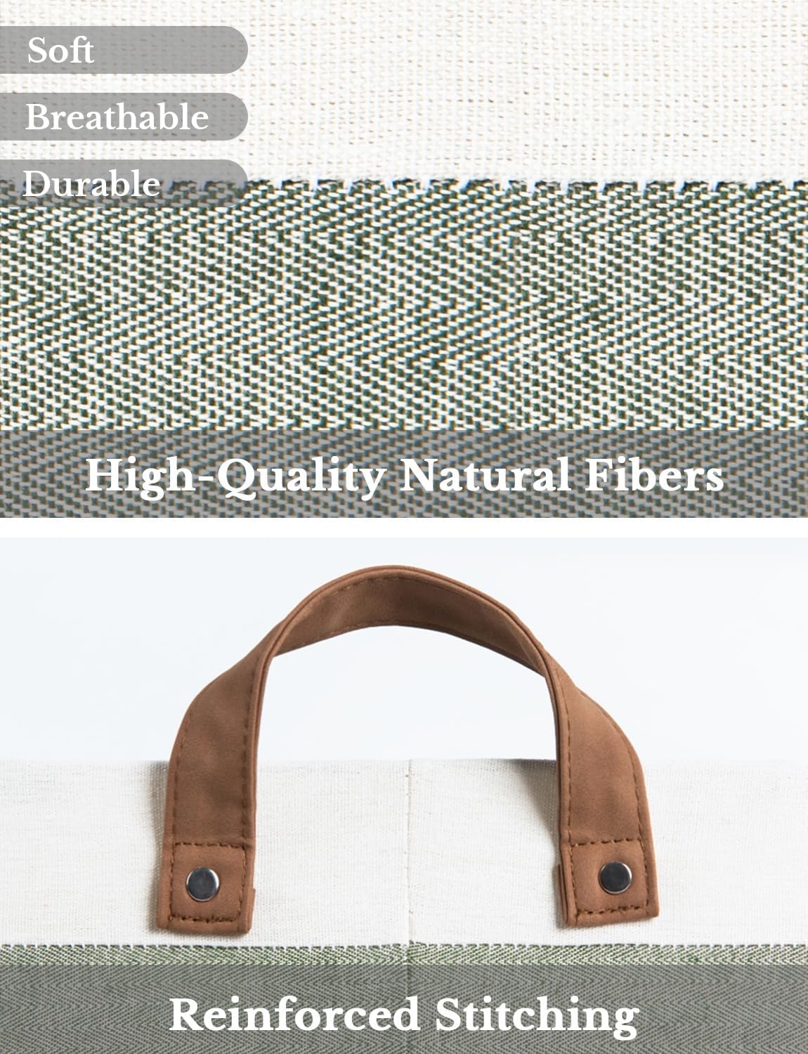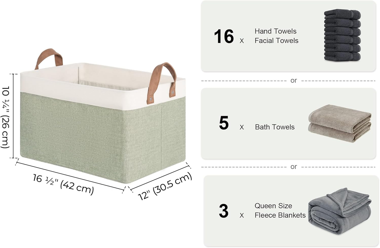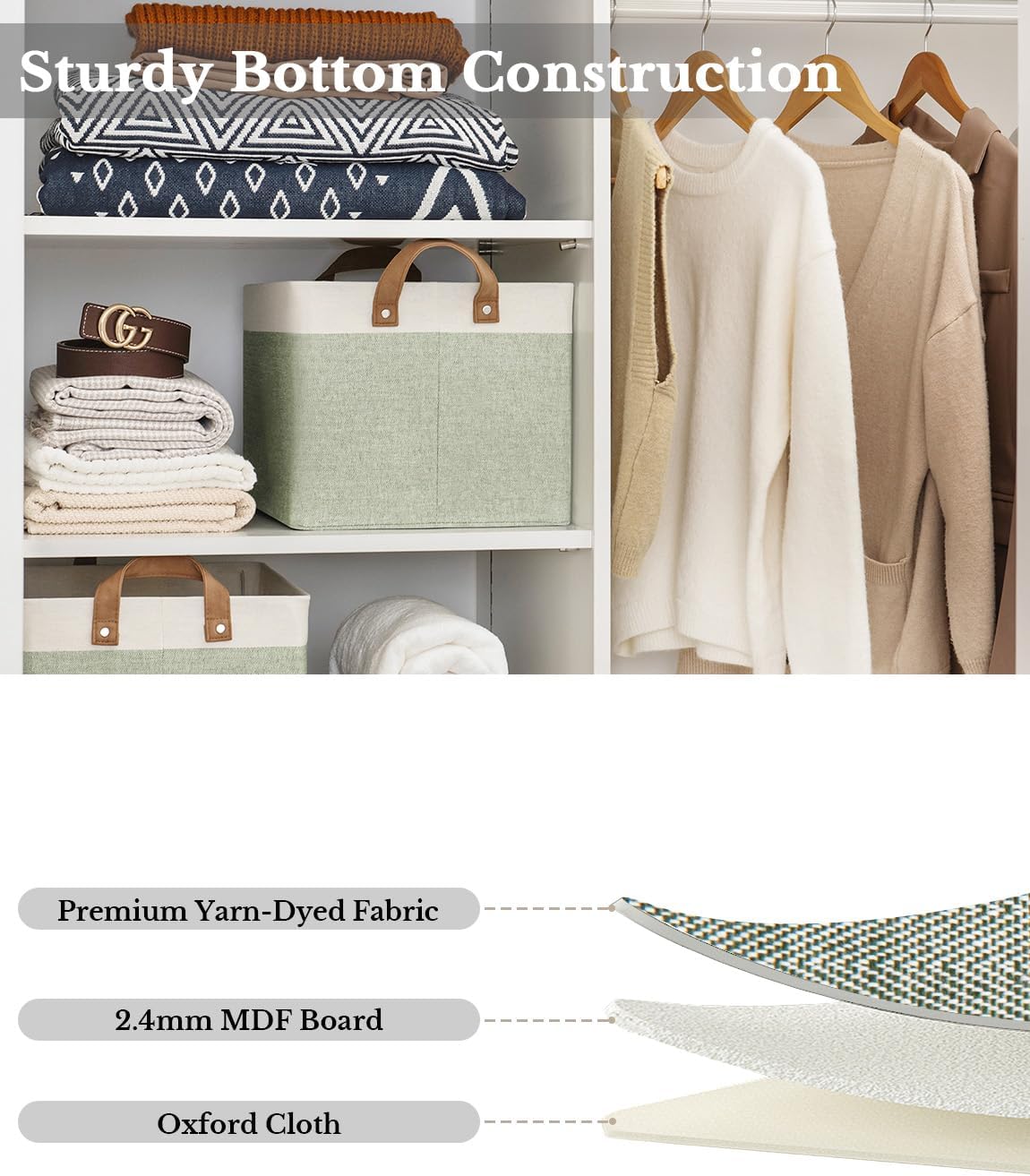 StorageWorks Storage Bins, Fabric Storage Bins for Shelves, Large Storage Baskets with Metal Frame, Closet Baskets and Bins with Handles, Green and White, 2-Pack