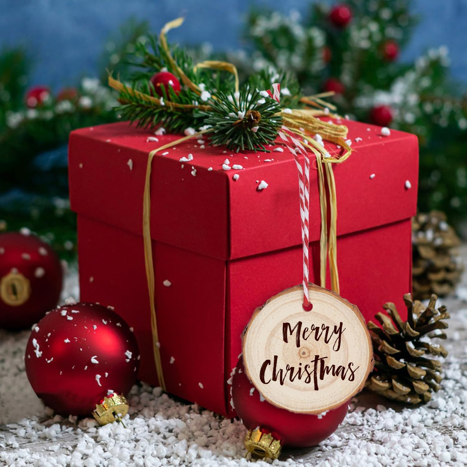 - 【 Easy to Use】 Each 3 Inch wood slice comes pre-drilled with a small hole and includes a roll of jute rope and a roll of red-and-white intersecting rope, making it convenient for you to hang your finished ornaments.