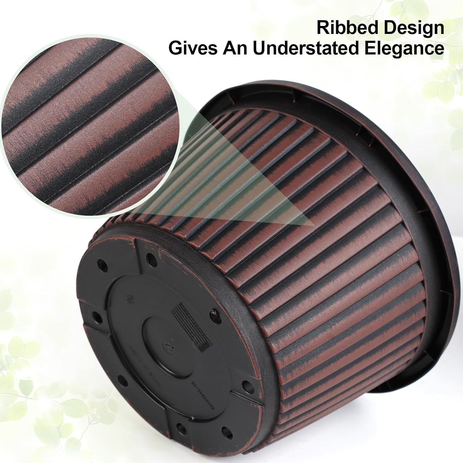 - 【Modern Style Planters】10 inch indoor planters with saucers provide a unique,nice style in ribbed design which gives an understated elegance that will enhance the beauty of your plant. These 10 inch plant pots are available in red-brown &blue-green & gold finished with a black antique stain. Plastic flower pots would be a beautiful addition to anyone’s deck or sunroom or house! for indoor and outdoor . With better breathabiity and water absorption, it’s beneficial to the healthy growth of plants.