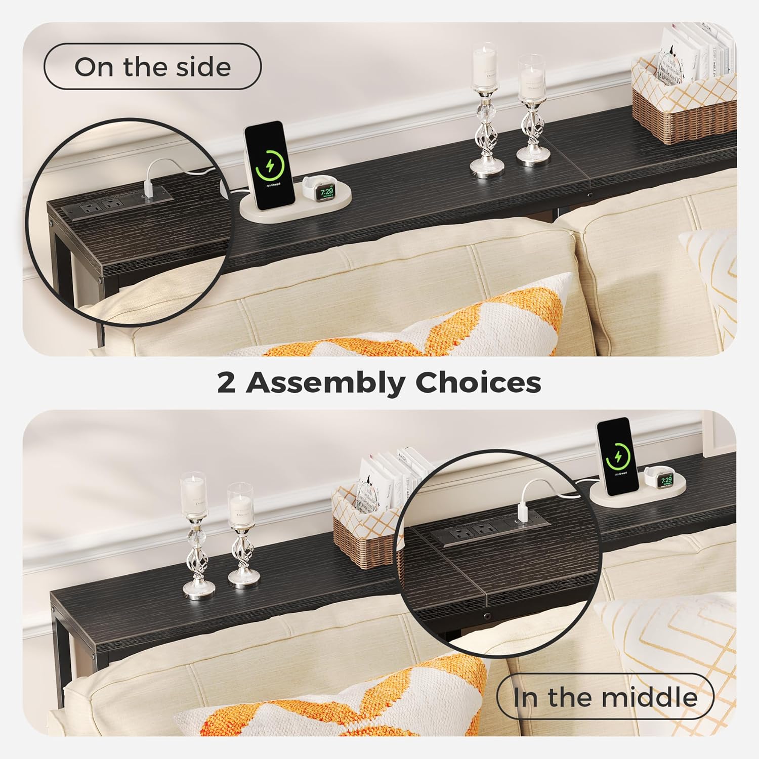 - [No Low Battery Warnings]: Imagine lounging on your sofa and brushing your phones to relax after a busy week. Donāt let low battery disappoint you. Let this sofa table narrow long with 2 AC outlets, 1 USB port and 1 Type-C port provide close-at-hand power