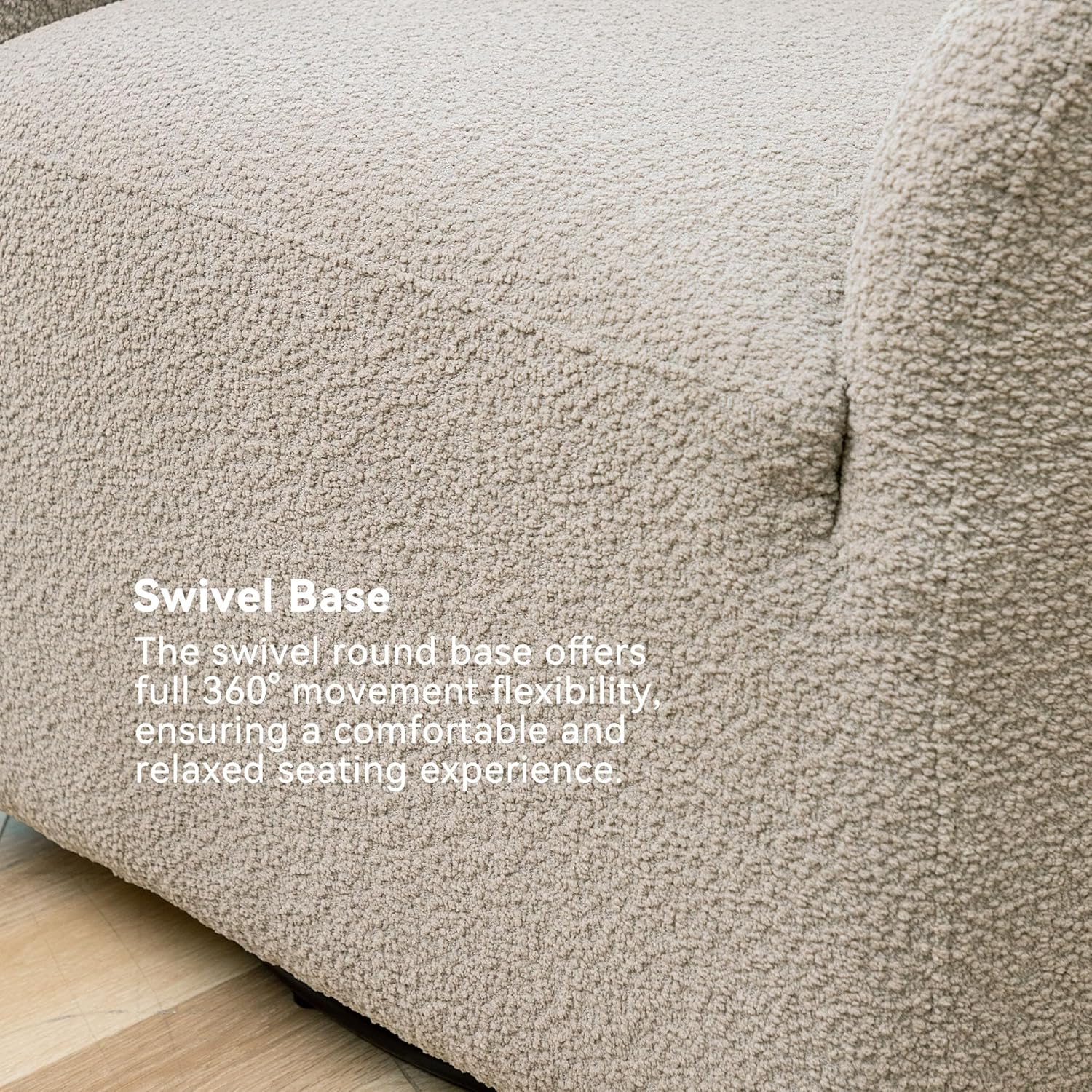 - PREMIUM BOUCLE FABRIC: The boucle upholstered swivel barrel chairs are covered in a premium boucle fabric that not only looks great but also feels cozy and soft to the touch. The texture of the boucle fabric adds an extra layer of comfort to the chairs, making it a great option for anyone looking for a comfortable seating option.