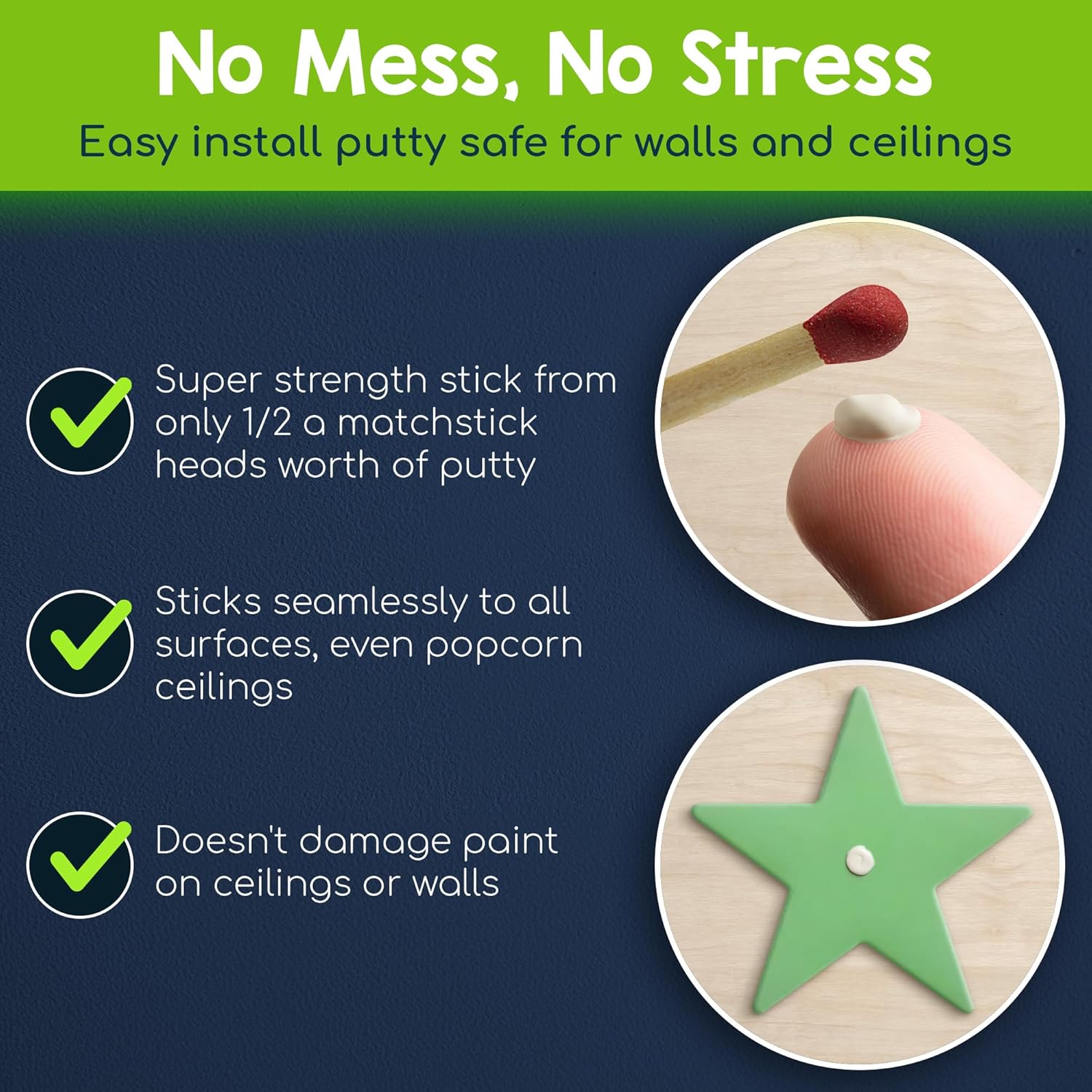 - Super Simple Set Up - It's something your child can even help with! Just take a tiny bit of putty, roll it into a ball, and place it at the center of each ceiling stars. Press them onto the ceiling with a little pressure and hold for 5 seconds. It's a fun and easy DIY project for you and your child to enjoy together.