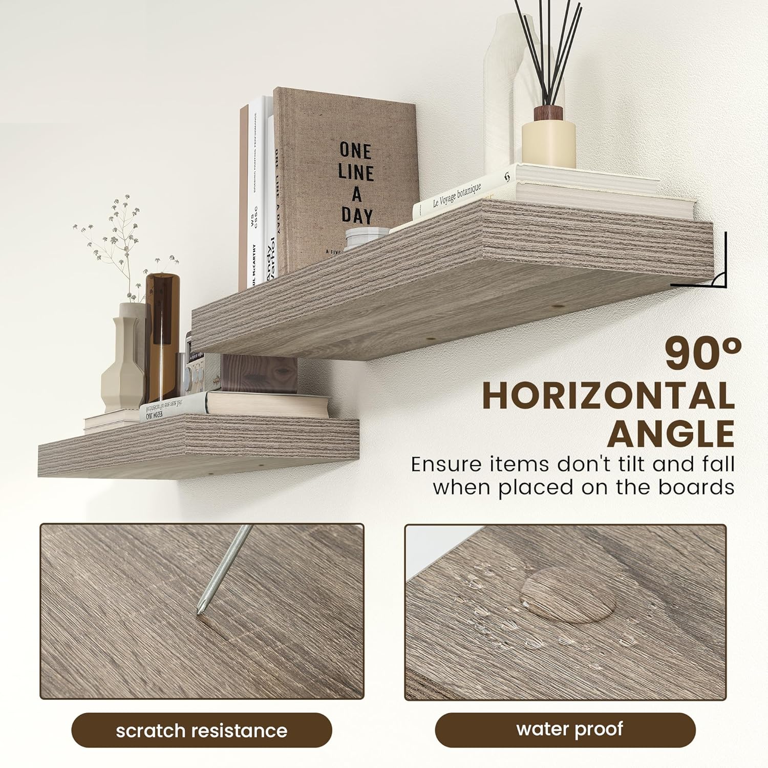 Deep Floating Shelves for Wall, 36W x 12D Rustic Large Floating Shelves Set of 2, 12'' Deep Grey Wood Floating Shelves for Living Room Bathroom Laundry Room Bedroom Kitchen Home Office - Grey