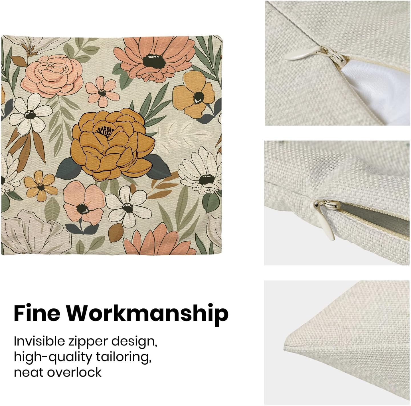 - 【Spring Pillow Covers】 Our floral throw pillow covers 16x16 inch are made of excellent breathable polyester linen fabric. The cream decorative pillow covers is durable, soft and skin-friendly. The plant outdoor pillow covers adopt exquisite edging technology and four sides of our floral pillow covers are sewn firmly, which is not easy to open the line.
