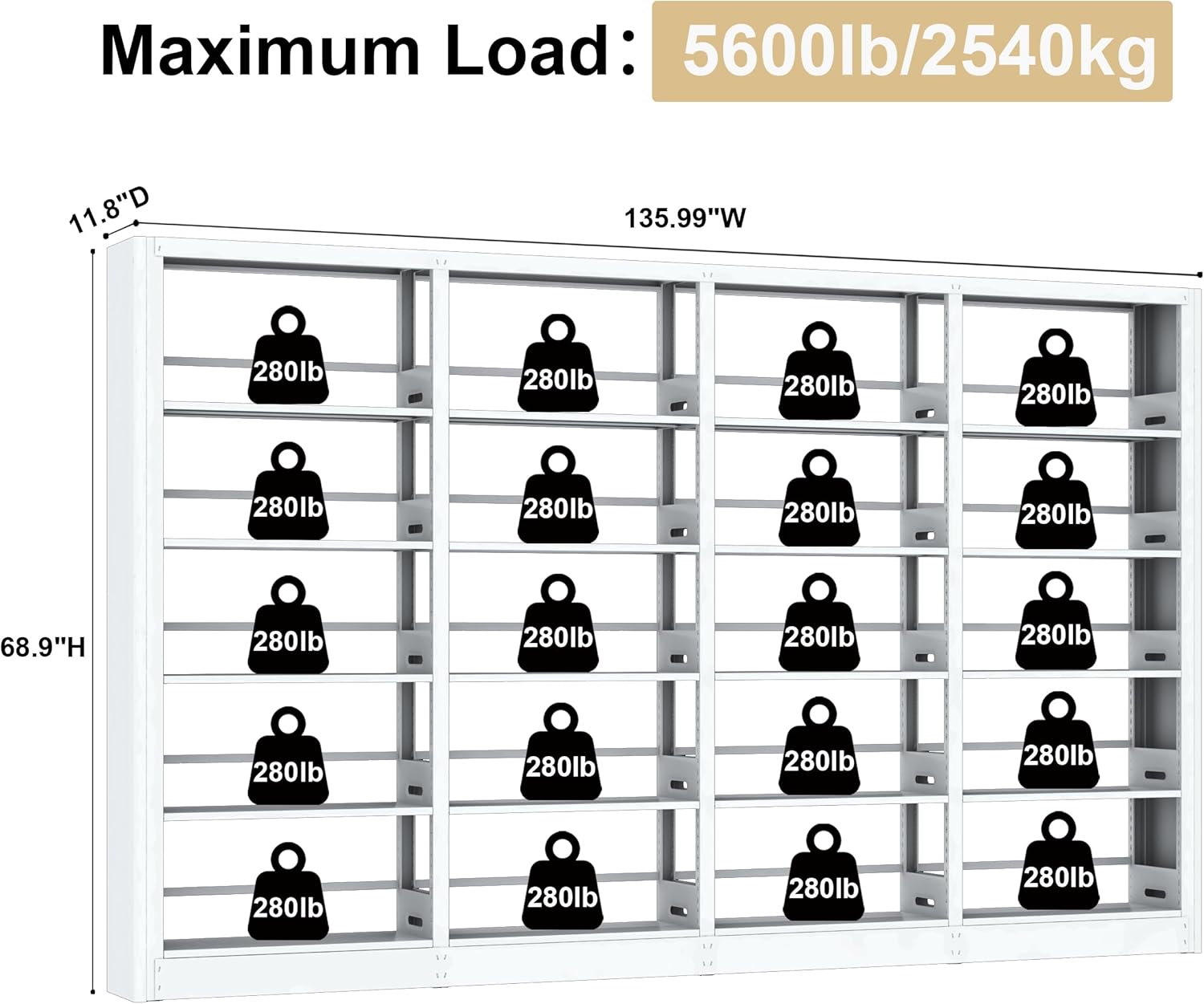 - ăLarge Load-bearing Steel BookshelfăMetal bookshelf Features:Heavy load bearing,Stable,Sturdy,Non-pollution,Long service life.Move multiple installation is not easy to damage.Our bookshelf is made of cold rolled steel and can hold up to 280 pounds per shelf. The ironck bookshelves are better load-bearing than wooden bookshelves and stronger than wooden bookshelves.
