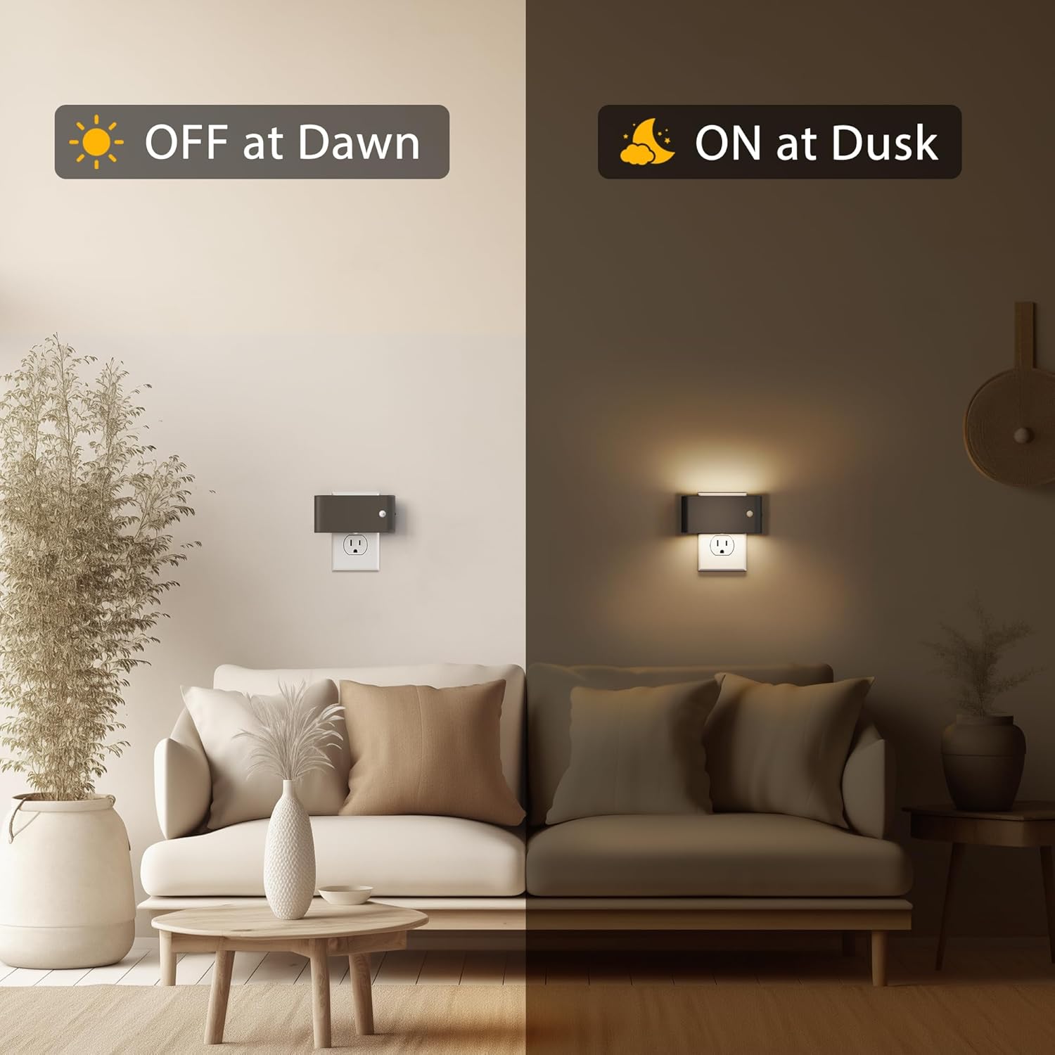 - Unique Design: Its distinctive Adesign serves as both a functional motion sensor night light and a decorative accent, elevating the ambiance of any space. Whether placed on living room, kitchen, or bedroom, this plug in night light complements various decor styles, adding a touch of charm to any room.