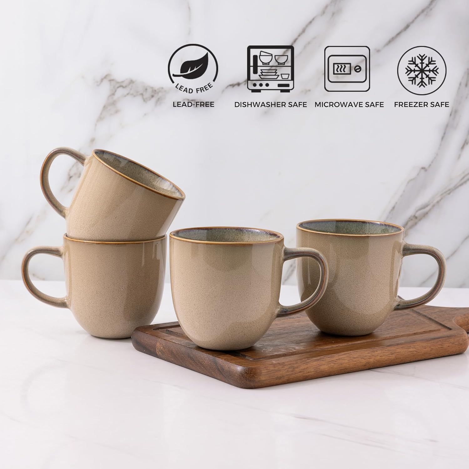 - EASY TO CLEAN & USE: These mugs are dishwasher and microwave safe, making them a convenient choice for busy households. The shiny glaze on the inside of each mug also helps prevent coffee stains from sticking, so you can enjoy your drink without any hassle.