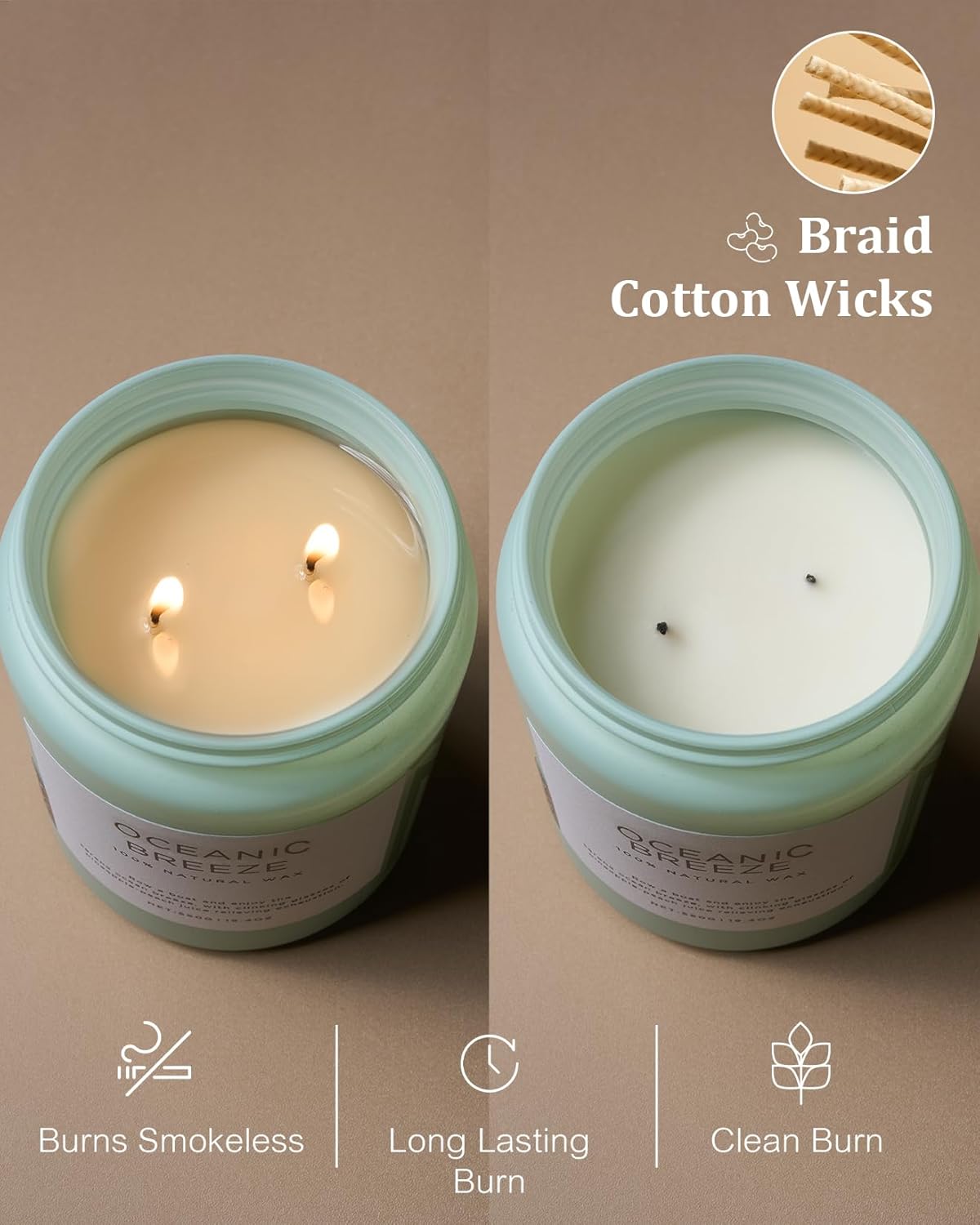 - š³ Clean Consistent & Even Burn - Using 2 American made lead-free cotton wicks for a even burn result. They're cotton flat braid wicks with paper throughout, providing increased rigidity and burn more consistently than 100% cotton wicks. Designed to reduce carbon buildup which leads to black soot.