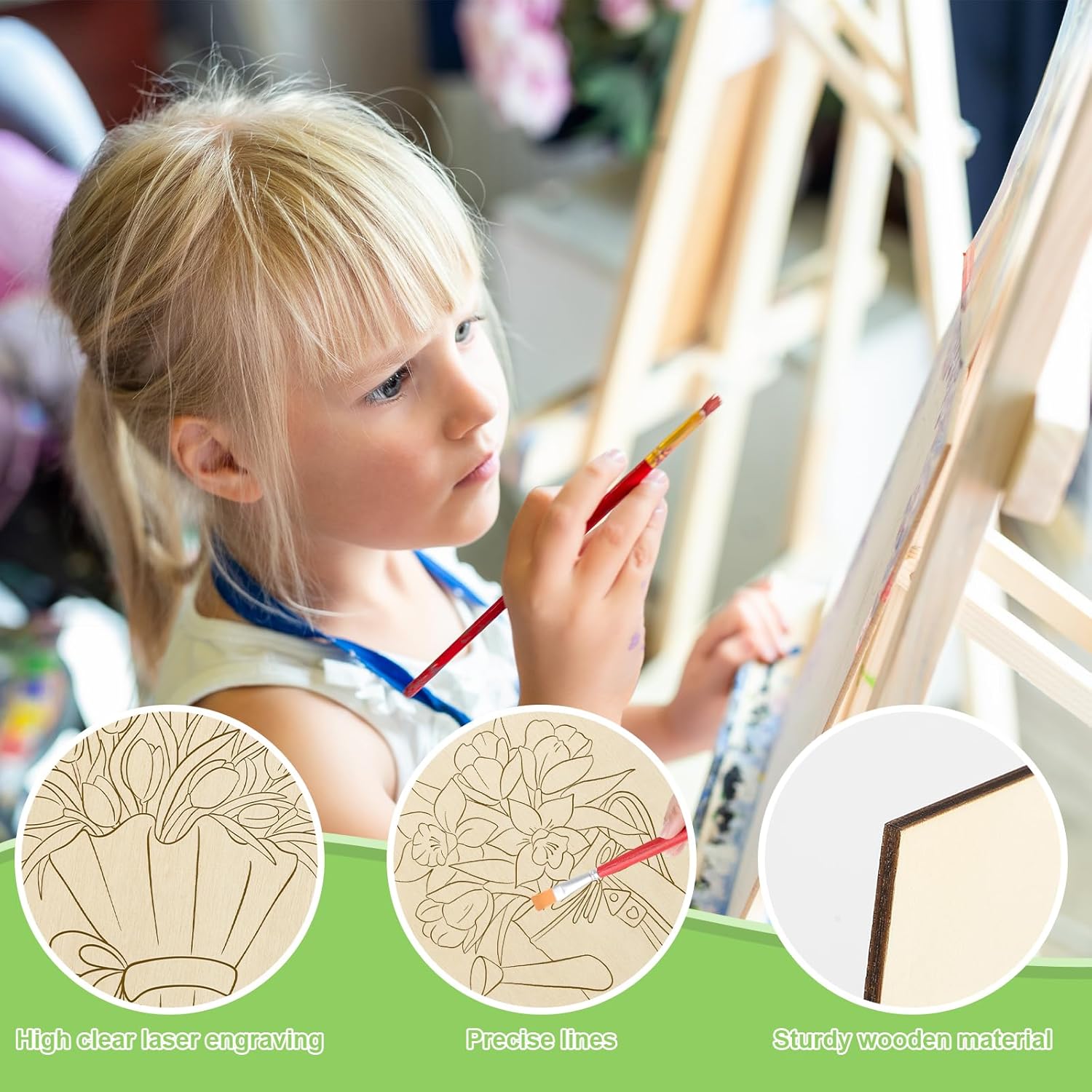 COCHIE 10 Pieces Large Spring Unfinished Wood Crafts to Paint for Adults and Kids, Bulk Predrilled Wooden Ornaments for Painting, Tulips Flowers Paintable Wood Slices Craft Supplies with Ropes