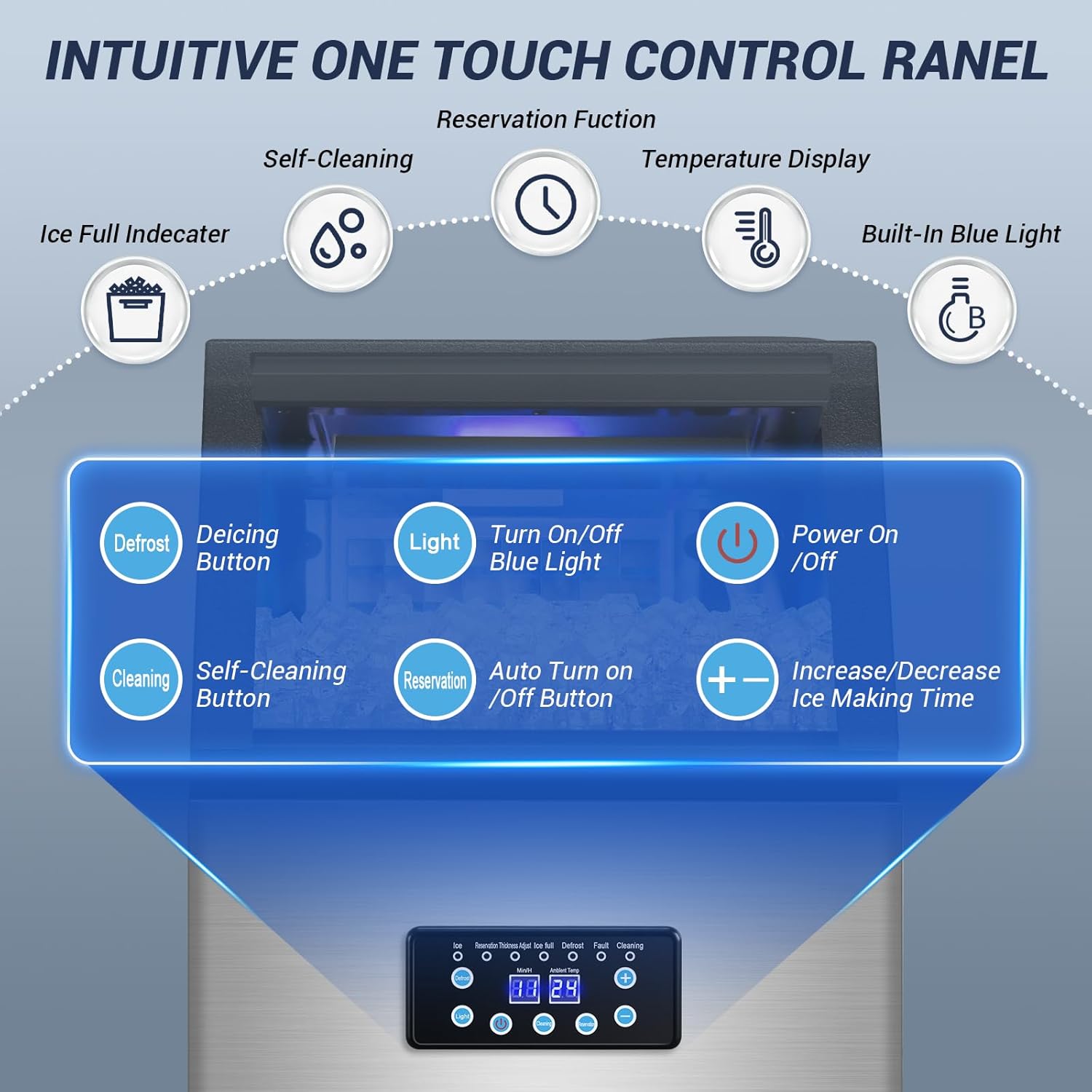 - π π¨ππ§π-ππ¨π‘ππ§ππ’π‘ππ πππ ππ’π‘π§π₯π’π π£ππ‘ππ - Our multi-functional ice cube maker is designed to provide convenience and ease of use. With a user-friendly LCD control panel, all the functions of the ice maker can be accessed and operated effortlessly with just a single click. Including 24-HOUR RESERVATION FUNCTIONγAUTOMATIC SELF-CLEANING FUNCTIONγMALFUNCTION REMINDERSγBUILT-IN BLUE LIGHTγDE-ICING FUNCTION and so on.