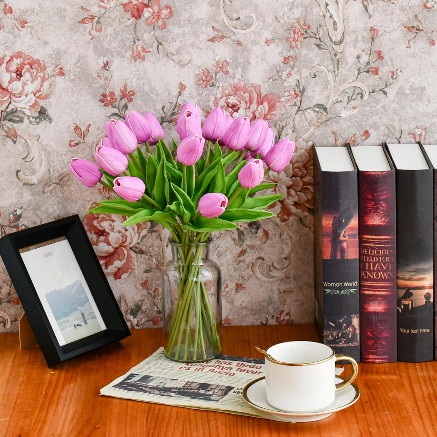- Premium PU Petals with a Silk-Like Feel.Made from high-quality PU material, each tulip offers a velvety texture and lifelike appearance, closely resembling a freshly bloomed flower.