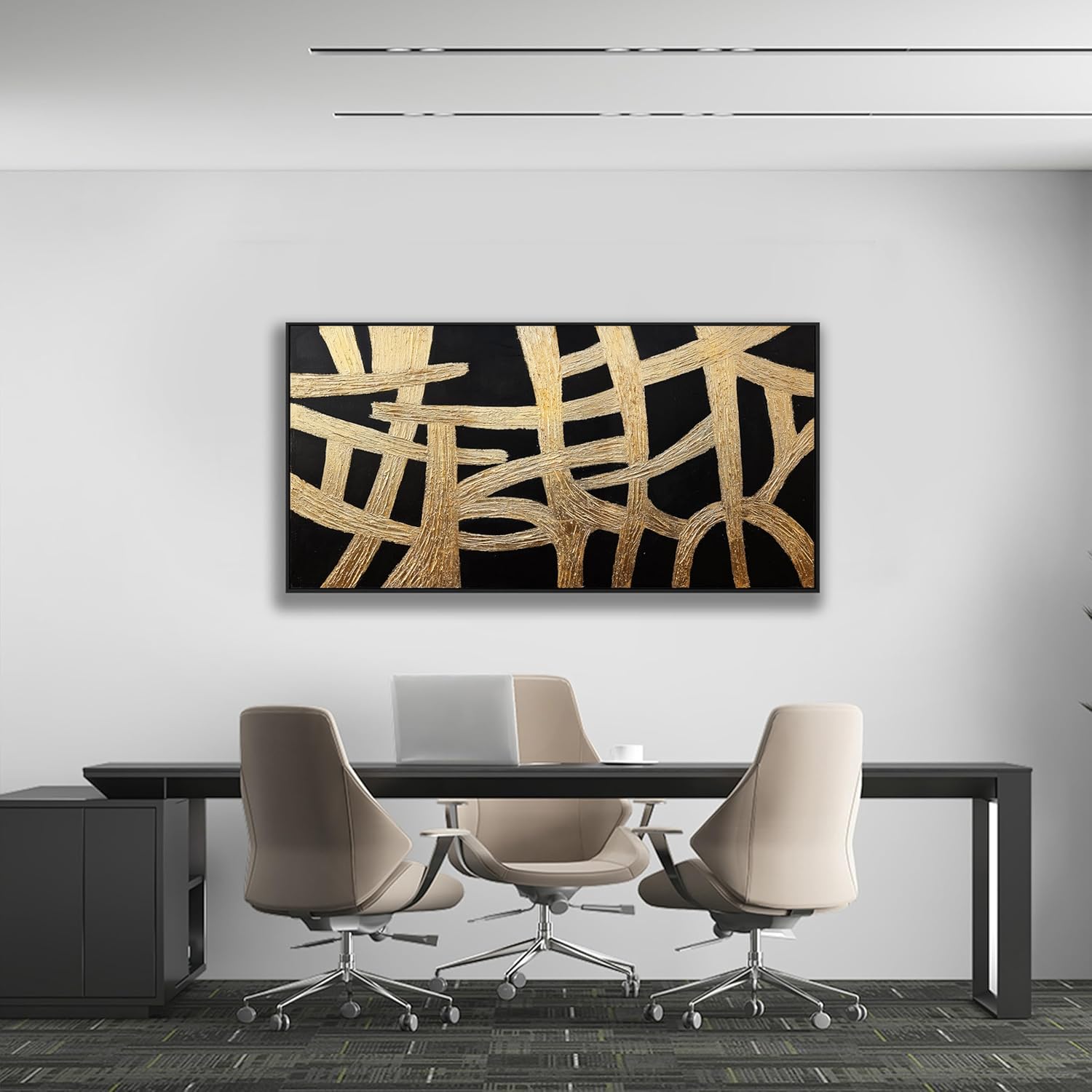 Canvas Wall Art Wall Decor Bedroom Pictures Artwork Abstract Wall Art Black And Gold Lines Texture Artwork Large Size Modern Painting Wall Decoration Pictures For Living Room Home Kitchen Office 29x58 Inch