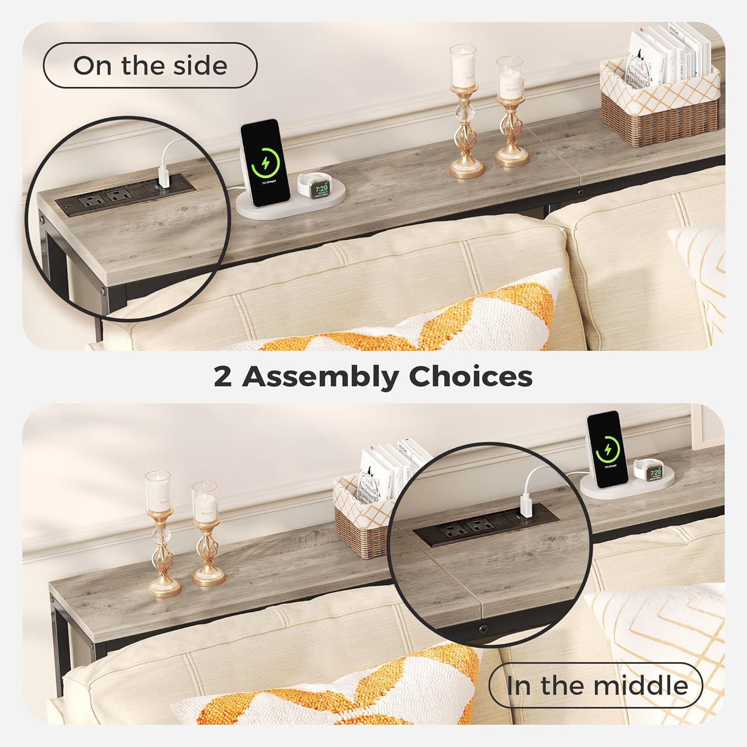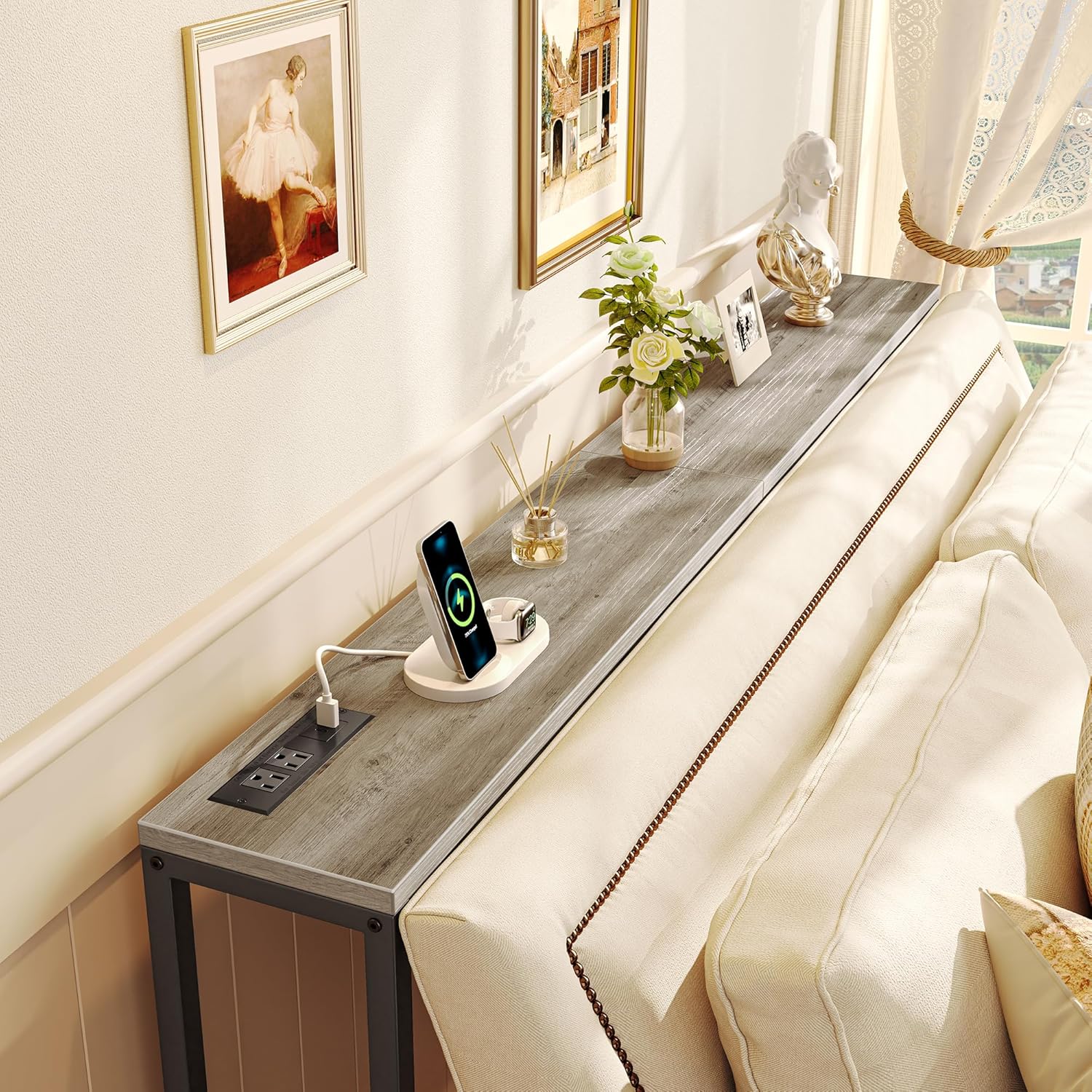 - [No Low Battery Warnings]: Imagine lounging on your sofa and brushing your phones to relax after a busy week. Donāt let low battery disappoint you. Let this sofa table narrow long with 2 AC outlets, 1 USB port and 1 type-C port provide close-at-hand power