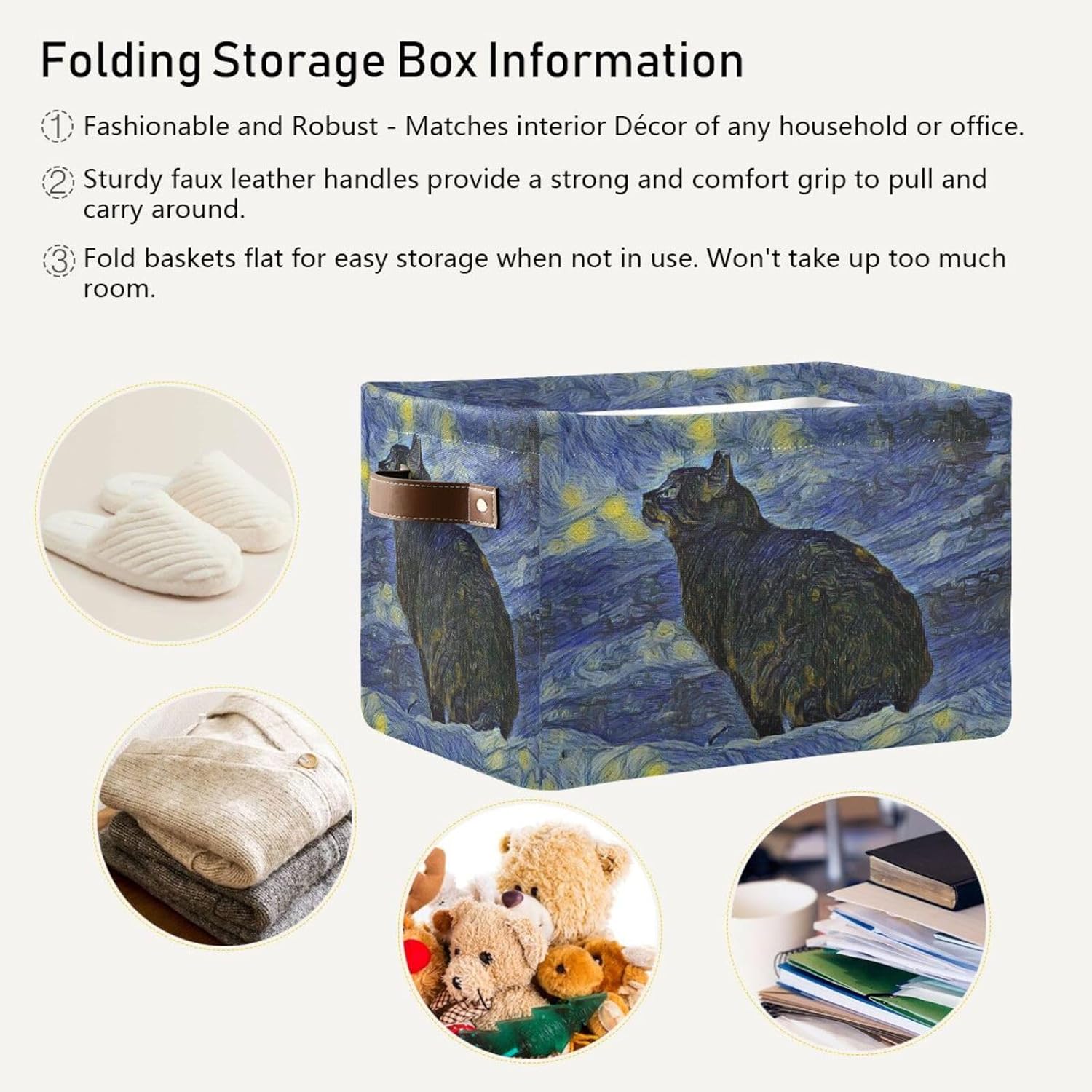 susiyo Storage Baskets for Shelves Organizer Baskets with Metal Frame Closet Storage Bins Fabric Bins Cubes with PU Handles for Organizing Shelf Nursery Toys 1 PACK,Black Cat