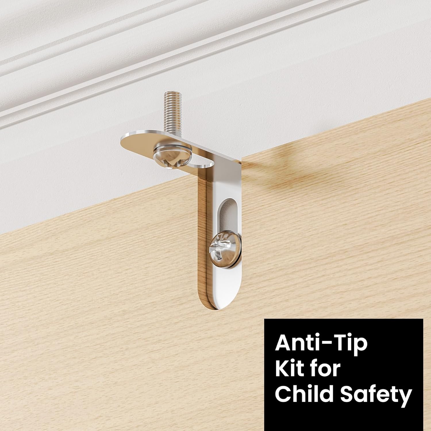 - âANTI-TIP TESTING. Included anti-tip kit can be attached to the wall to provide additional stability. Our panels are certified with CARB Phase 2 compliant: Non-toxic, low-VOC finishes make this bookcase a safe storage space.