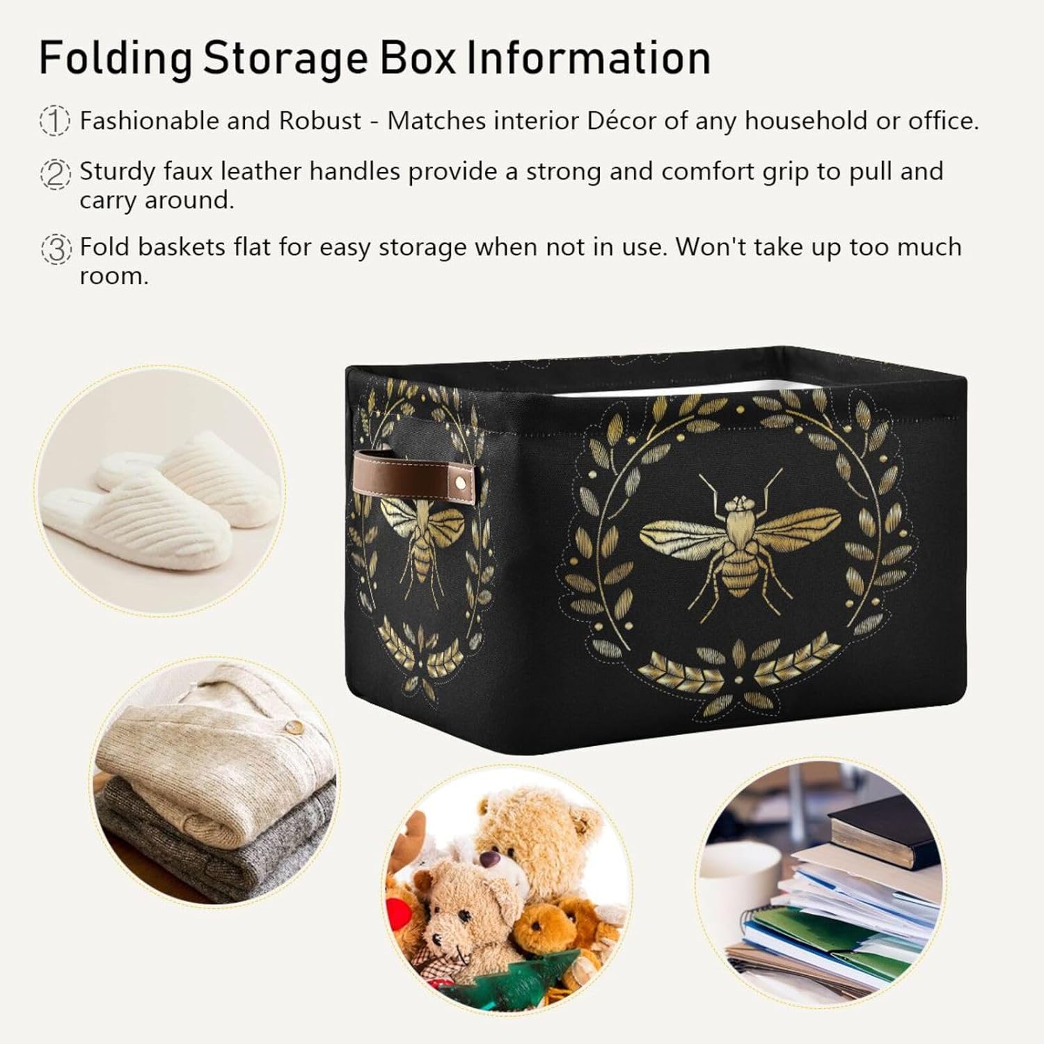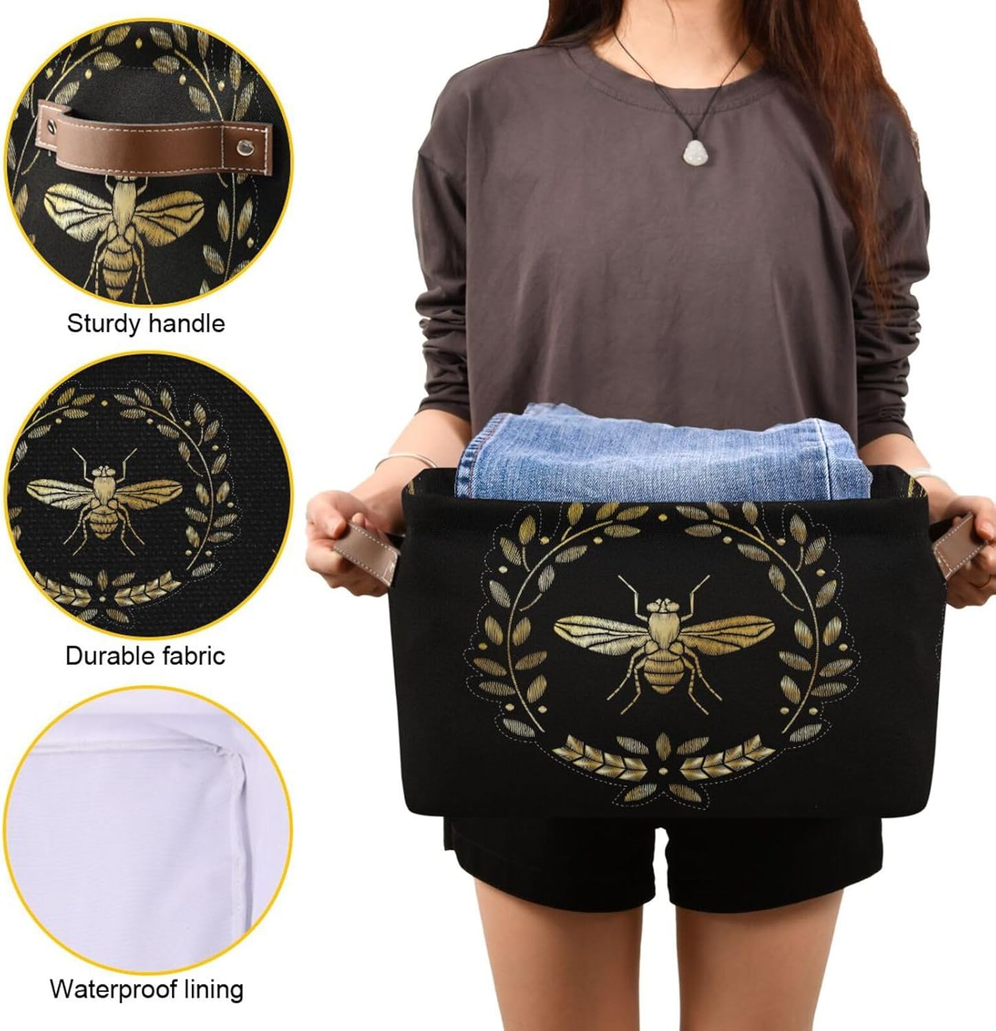 susiyo Storage Baskets for Shelves Organizer Baskets with Metal Frame Closet Storage Bins Fabric Bins Cubes with PU Handles for Organizing Shelf Nursery Toys 1 PACK,Gold Bee Floral
