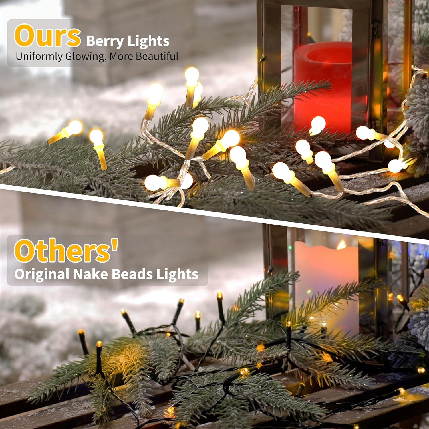 - IP44 Waterproof Warm White Berry String Lights: These outdoor decorative lights feature waterproof, are durable and weather-resistant, making them perfect for indoor & outdoor use. They're versatile, easy to maintain, and add a charming ambiance to any setting, whether it's for a party or everyday enjoyment. Plus, they provide peace of mind with their safety features, ensuring you can enjoy them worry-free in any weather. Perfect to enhance the ambiance of your outdoor spaces, such as patios, decks, balconies, or gardens.