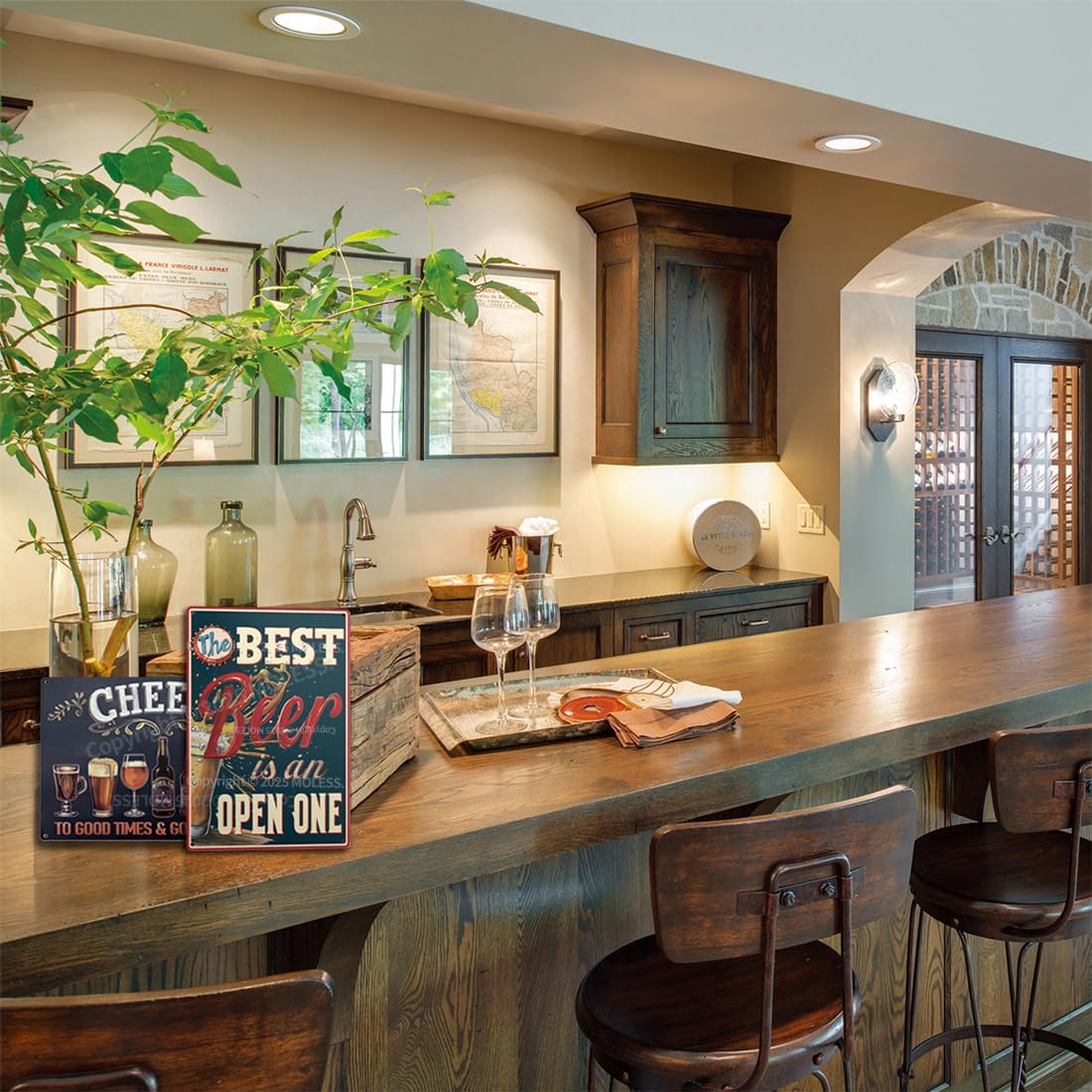 "The Best Beer is an Open One" Funny Bar Sign or Man Cave Decor | 12x8″ Durable Vintage Metal Beer Signs Wall Decorations for Home Bar/Basement/Garage/Mancave, 2347