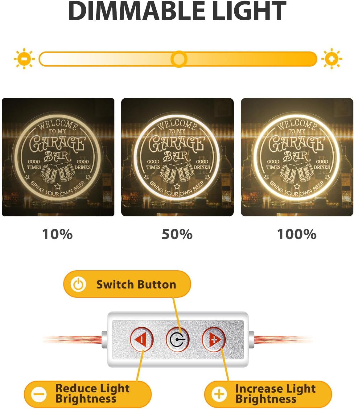 - â¨ă10-Level DimmableăCustomize your led signs experience with our 10-level dimmable feature! Adjust the brightness of your neon sign to match your mood or ambiance. Whether you want a subtle glow or a bright, vibrant display, you can easily adjust it to your preference with our easy-to-use dimming controls.