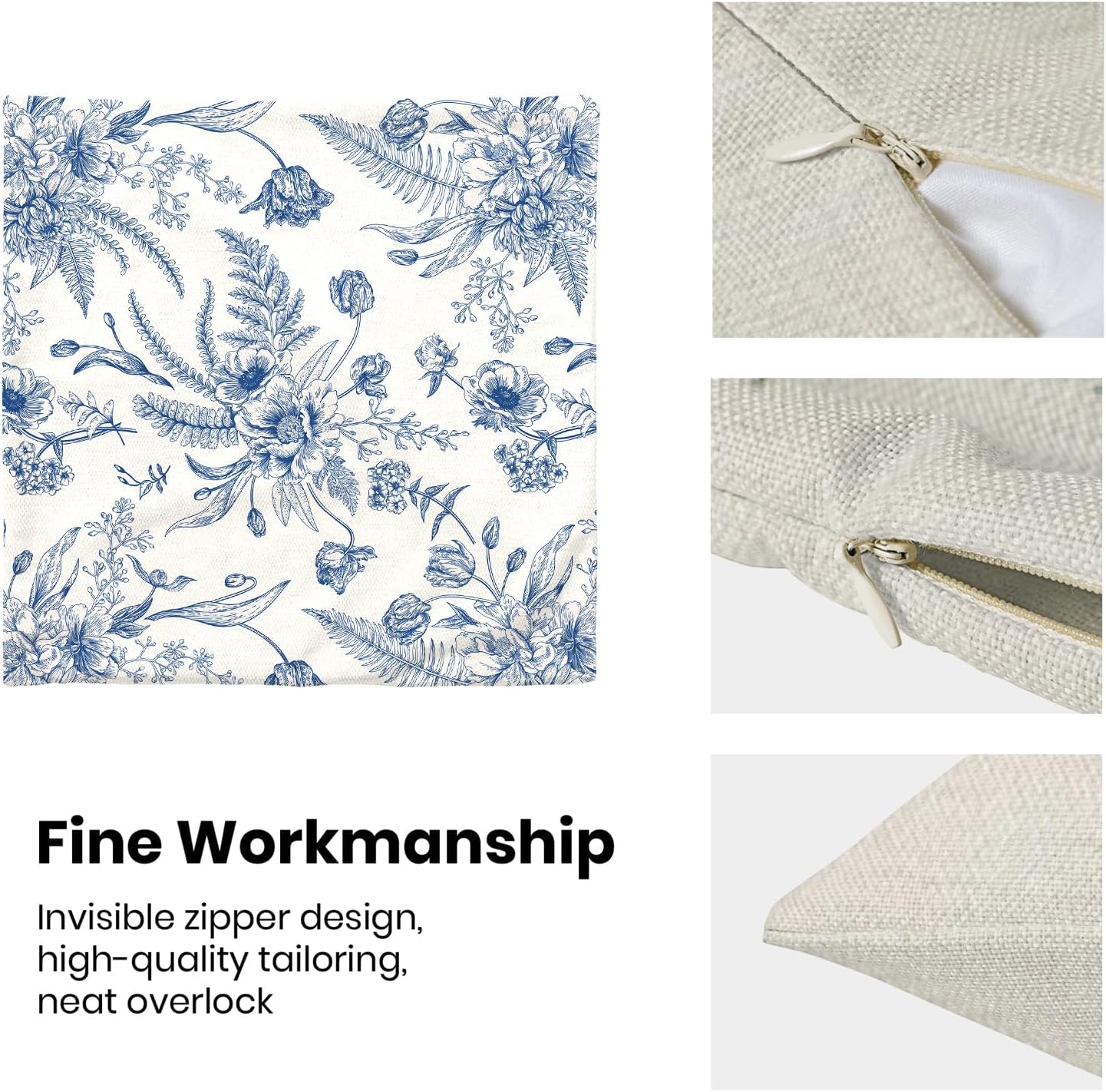 - 【Spring Pillow Covers】 Our Chinoiserie floral throw pillow covers 16x16 inch are made of excellent breathable polyester cotton fabric. The Blue and White floral decorative pillow covers is durable, soft and skin-friendly. The plant outdoor pillow covers adopt exquisite edging technology and four sides of our floral pillow covers are sewn firmly, which is not easy to open the line.