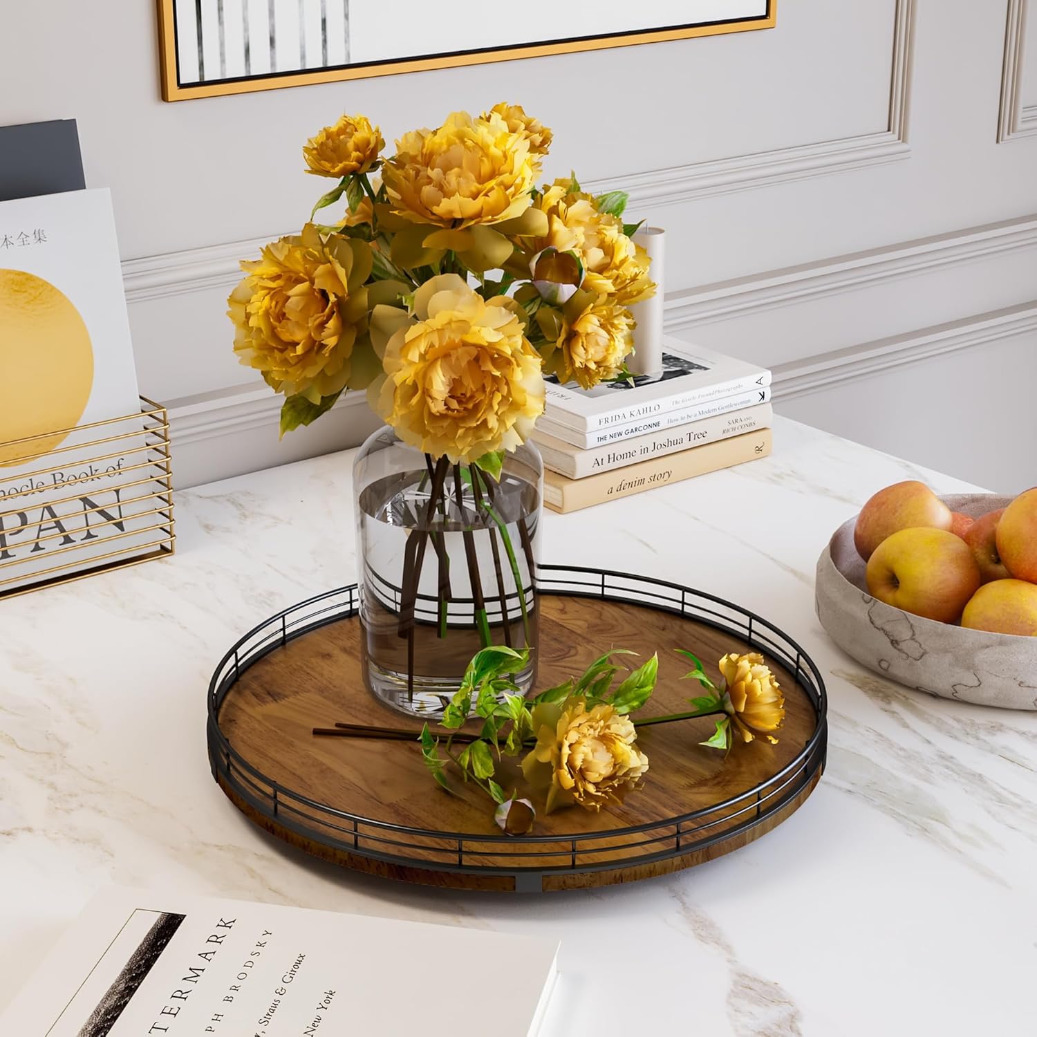 Farmhouse Oak 16" Lazy Susan Turntable Organizer for Cabinet, Round Wooden Lazy Susan Organization and Storage for Dining Table, Pantry, Kitchen, Countertop, Cupboard,Home Decor, Walnut Wood (16")