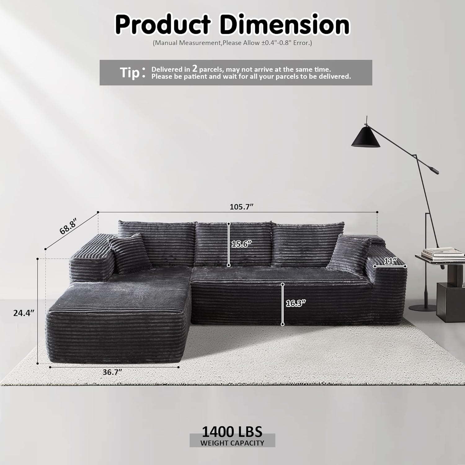 • Modular Sectional Sofa:Discover the versatility of our simplified style modular sofa, designed for flexible configurations to fit your needs. This minimalist L-shaped sectional set maximizes space when placed against a wall. Composed of two chic pieces, this living room set invites you to customize your comfort and style