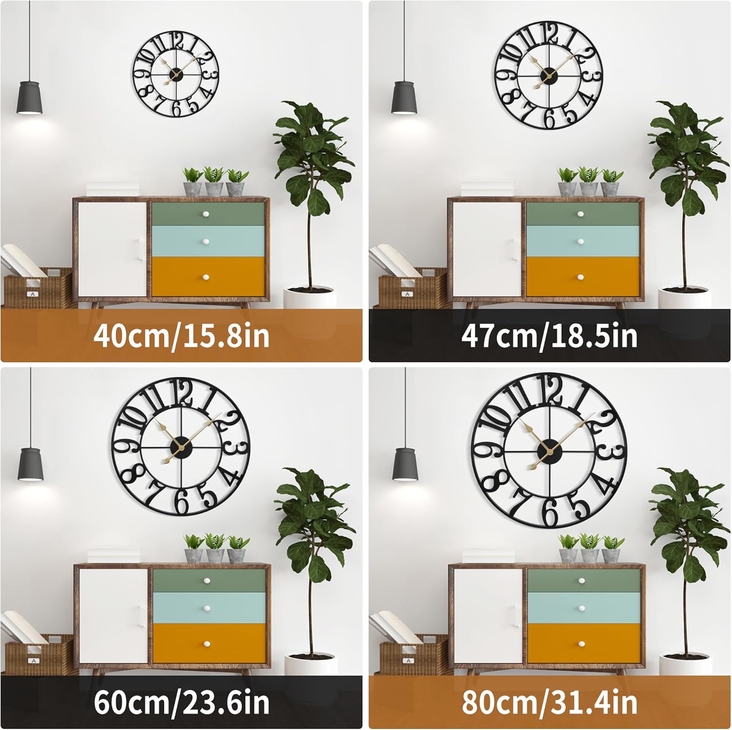 Large Wall Clock for Living Room Decor - 40cm/ 16 Inches Silent Non-Ticking Metal Wall Clocks Battery Operated, Vintage Decorative Modern Wall Clock for Bedroom, Office, Farmhouse Decor