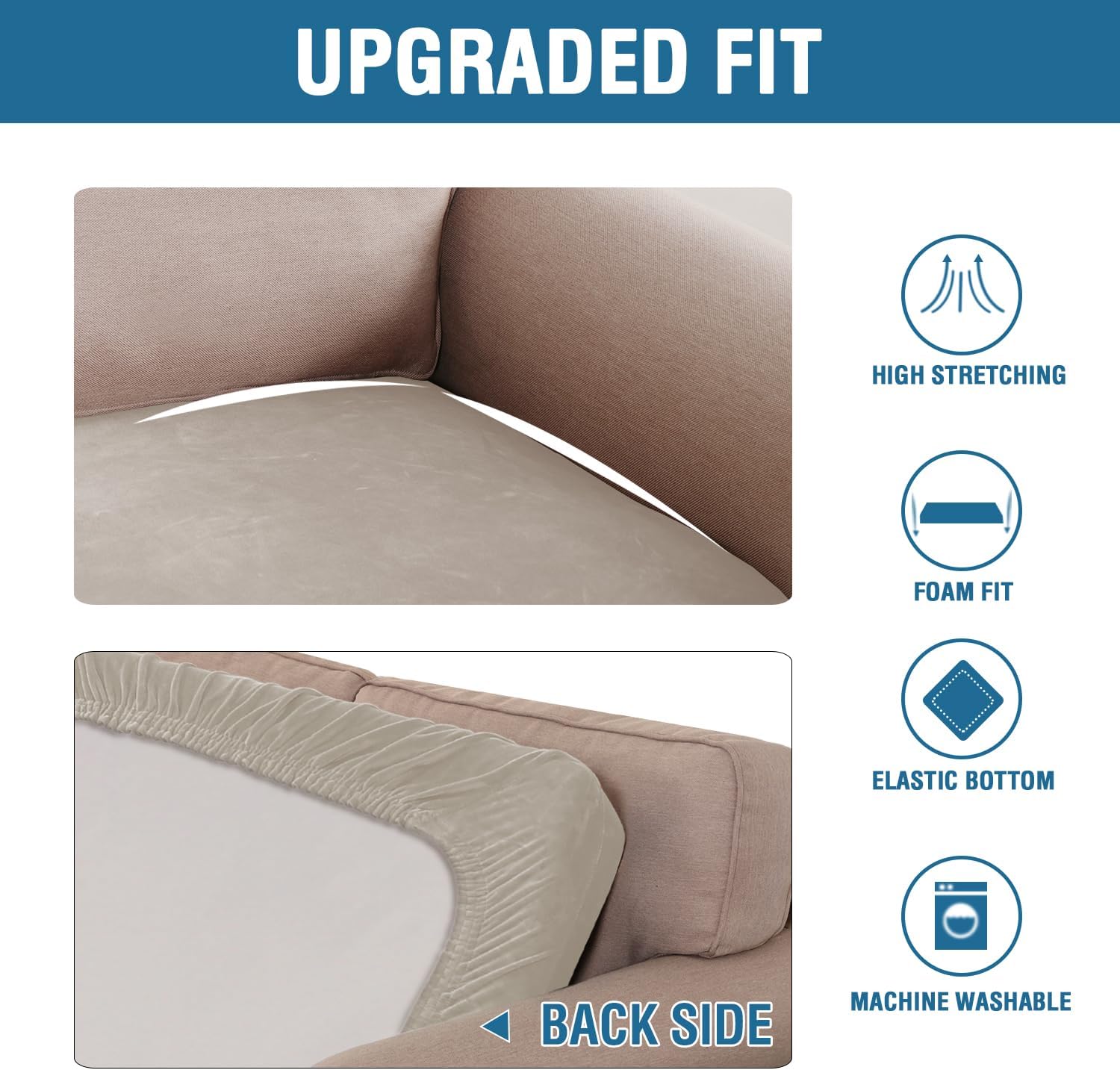 H.VERSAILTEX Velvet Stretch Individual Couch Cushion Cover Plush Cushion Slipcover for Loveseat Sofa Cushion Furniture Protector Seat Cushion Sofa Cover (1 Piece Sofa Cushion Cover, Oatmeal)