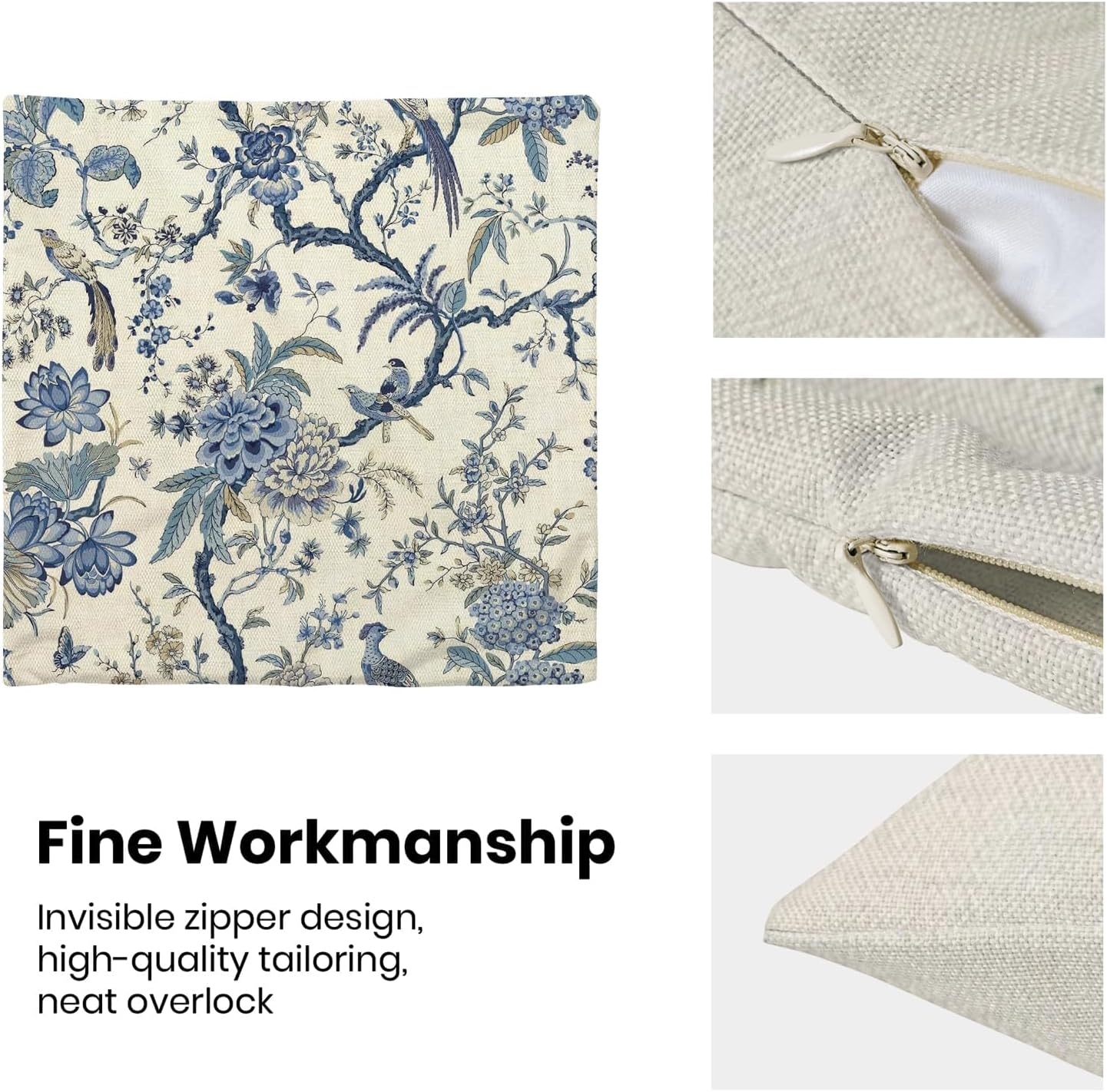 - 【Spring Pillow Covers】 Our Chinoiserie floral throw pillow covers 24x24 inch are made of excellent breathable polyester cotton fabric. The blue and white floral decorative pillow covers is durable, soft and skin-friendly. The plant outdoor pillow covers adopt exquisite edging technology and four sides of our floral pillow covers are sewn firmly, which is not easy to open the line.
