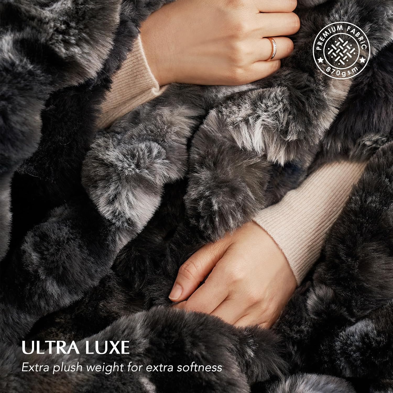 EVERGRACE Ultra Soft Luxury Fluffy Ridgeline Faux Rabbit Fur Bubble Throw Blanket, Thick Warm Fuzzy Throw for Bed, Cozy Plush Reversible Blanket for Couch,Charcoal Gray Heather, 60x80 Inches, 870 GSM