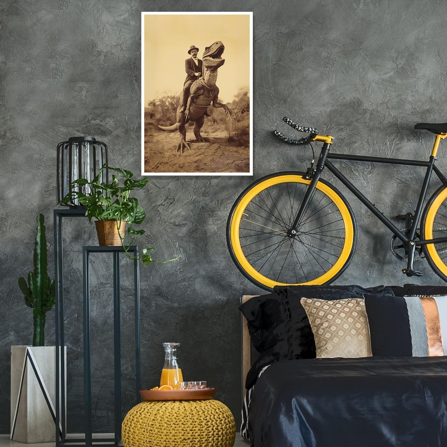 Goth Decor Antiqued Wicca Art Poster Dark Academy Dinosaur And Cowboy Canvas Wall Art Horror Posters Spooky Indoor Art Family Bedroom Office Space Decor 24X36inch Unframed