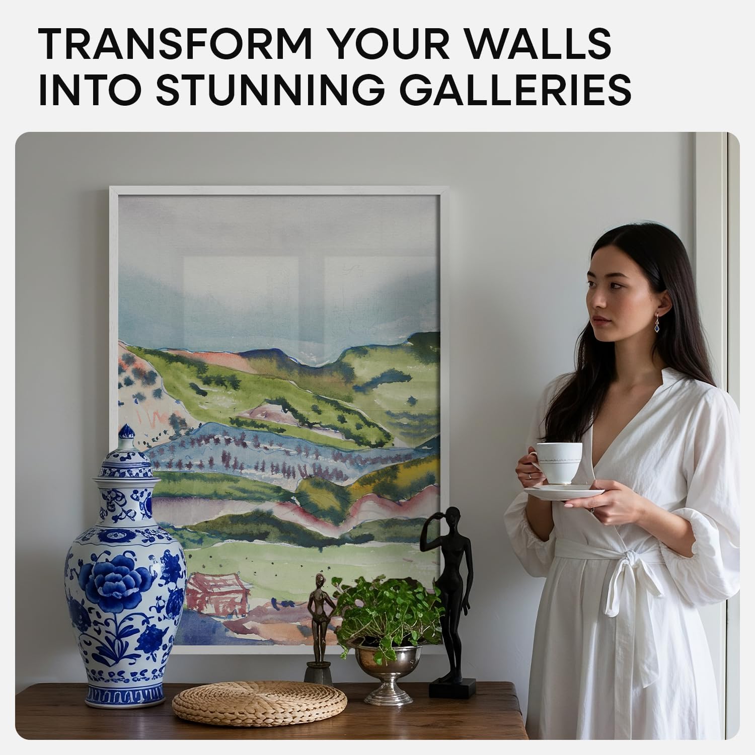 Homeforia 20x28 Picture Frame White, High End Oak 20 x 28 White Wood Poster Frames with Mat 14 by 22 Photo, 20x28 Wooden Frame Matted to 14x22, 28x20 Hanging Frames, Tempered Glass, Wall Kit, Set of 1