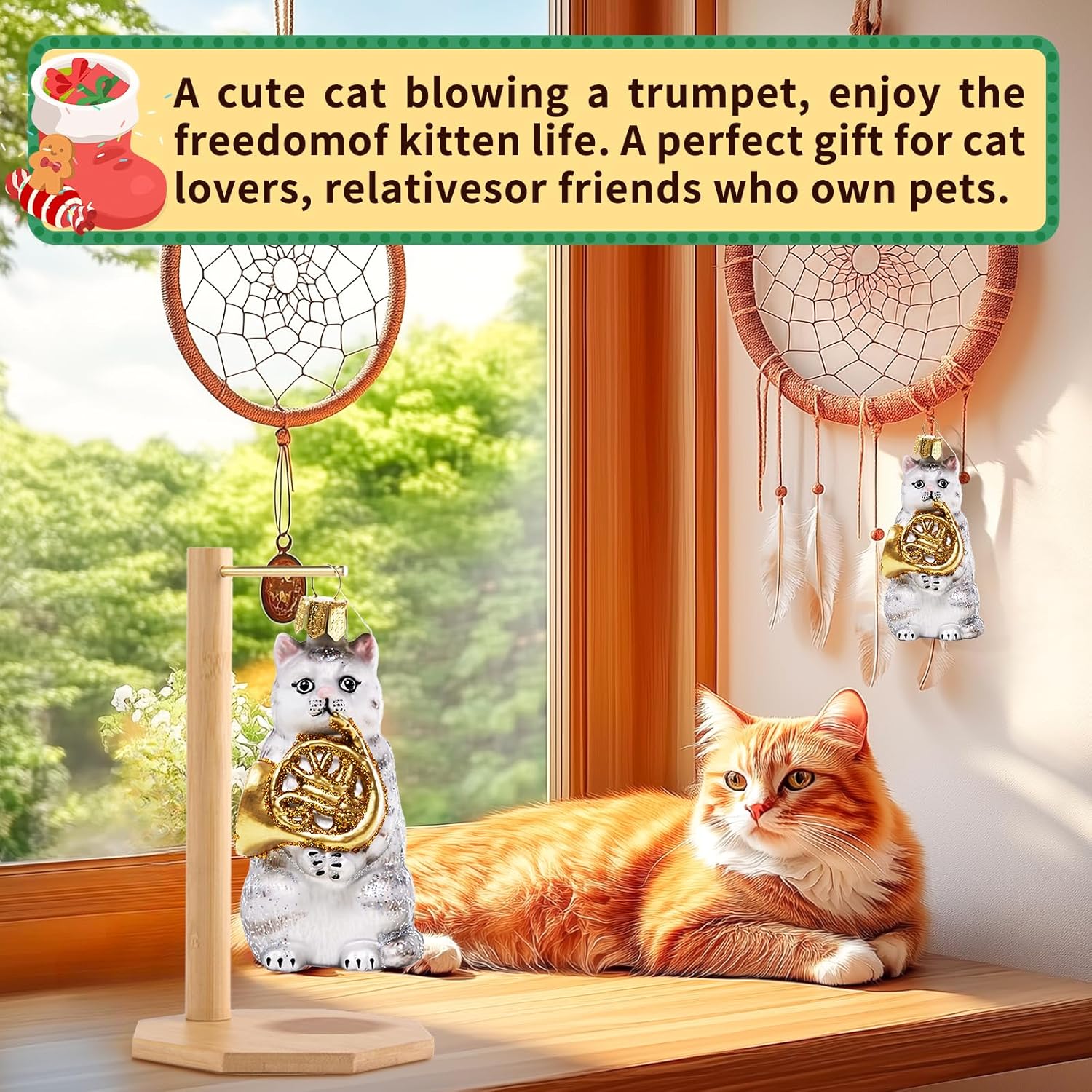 - Cute & Exquisite Christmas Decorations: The Christmas tree ornaments feature cats as the main theme element, with cute cats playing their trumpet and performing holiday music, full of joy, warm holiday atmosphere, and beautiful blessings. The cat ornaments is entirely hand drawn, with exquisite craftsmanship and delicate and vivid depictions. You can decorate anywhere you want, and believe it can blend well