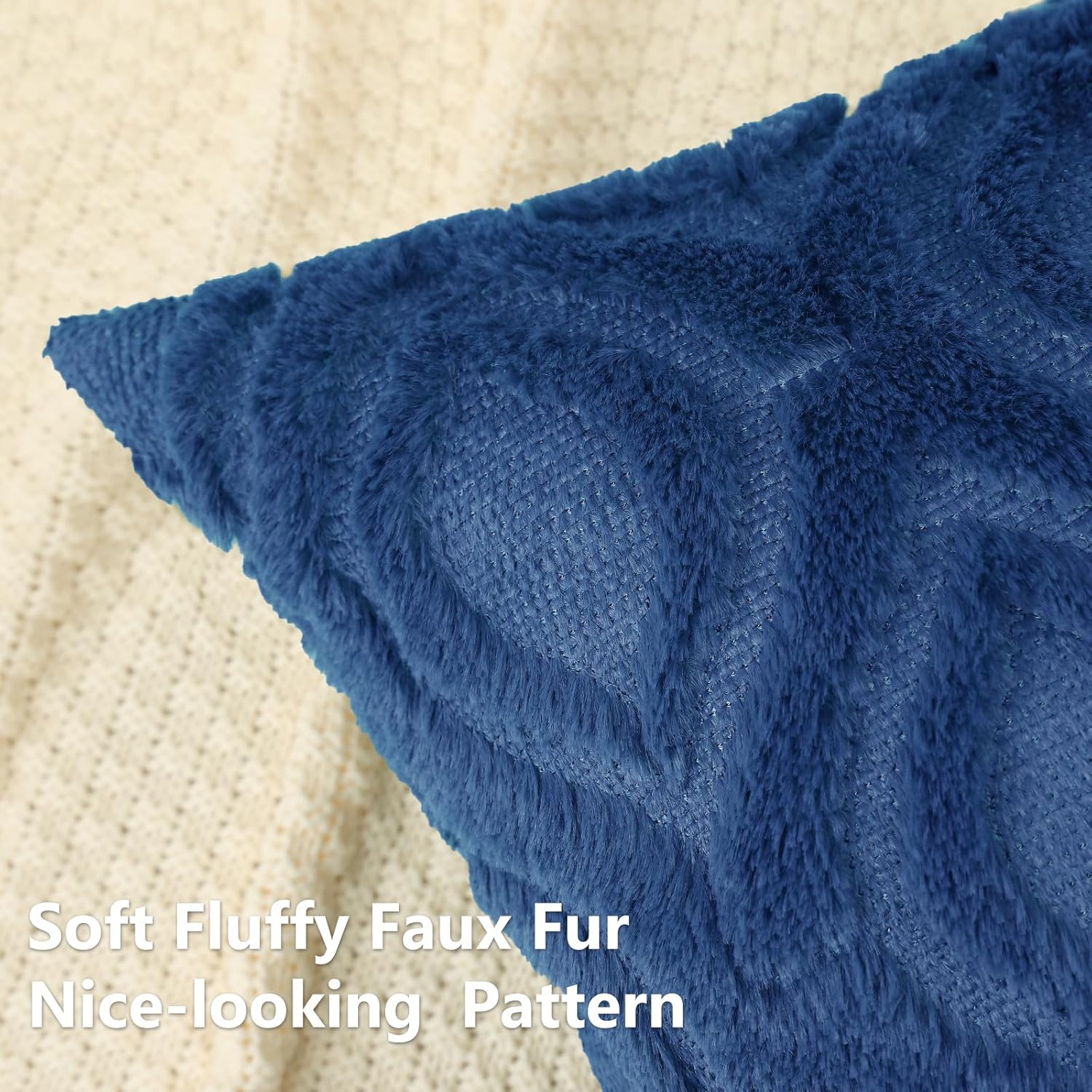 decorUhome Fall Throw Pillow Covers 22x22 Inch Set of 2, Soft Plush Decorative Faux Fur Dark Blue Solid Couch Pillow Covers, Accent Farmhouse Neutral Square Euro Pillow Cases for Sofa Bed Living Room