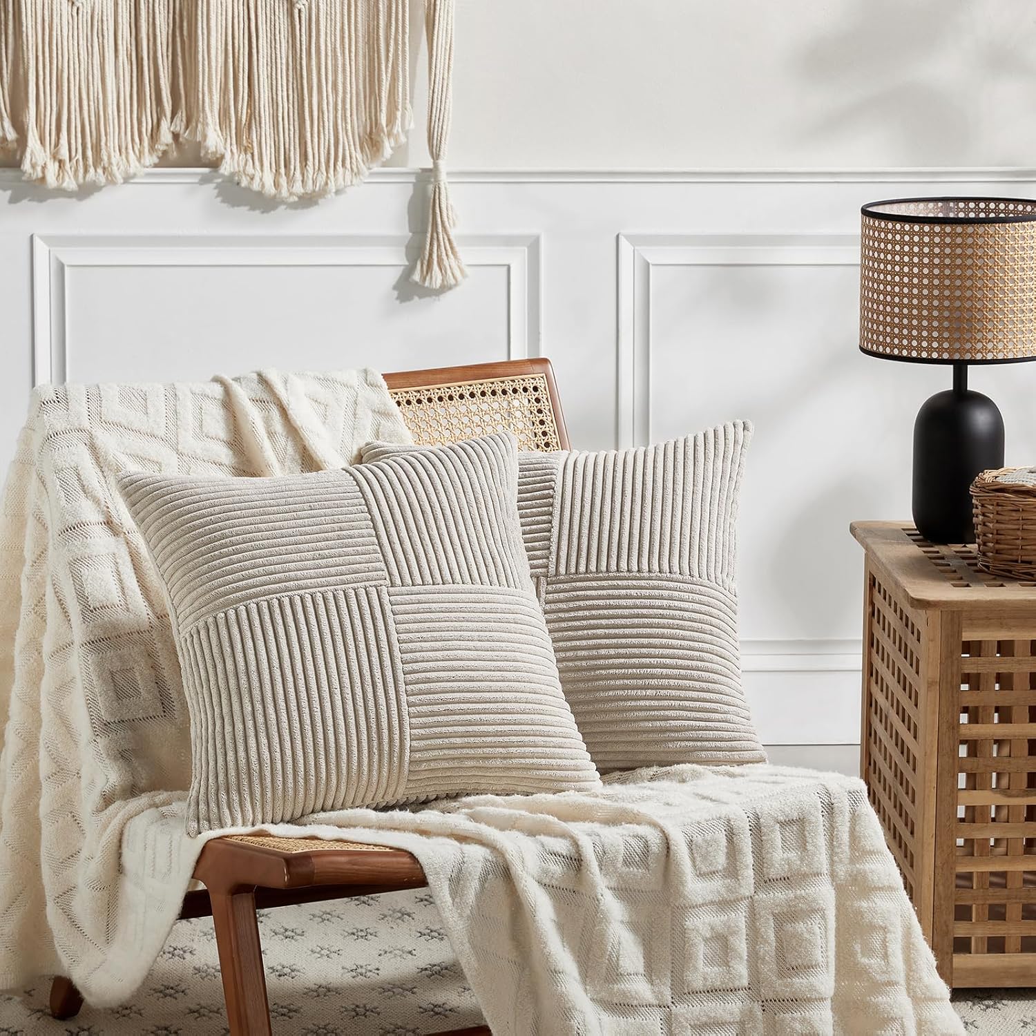 Fancy Homi 2 Packs Neutral Taupe Euro Decorative Throw Pillow Covers 26x26 Inch for Couch Bed Sofa, Rustic Farmhouse Boho Home Decor, Soft Corss Corduroy Patchwork Textured Square Cushion Case 66x66cm