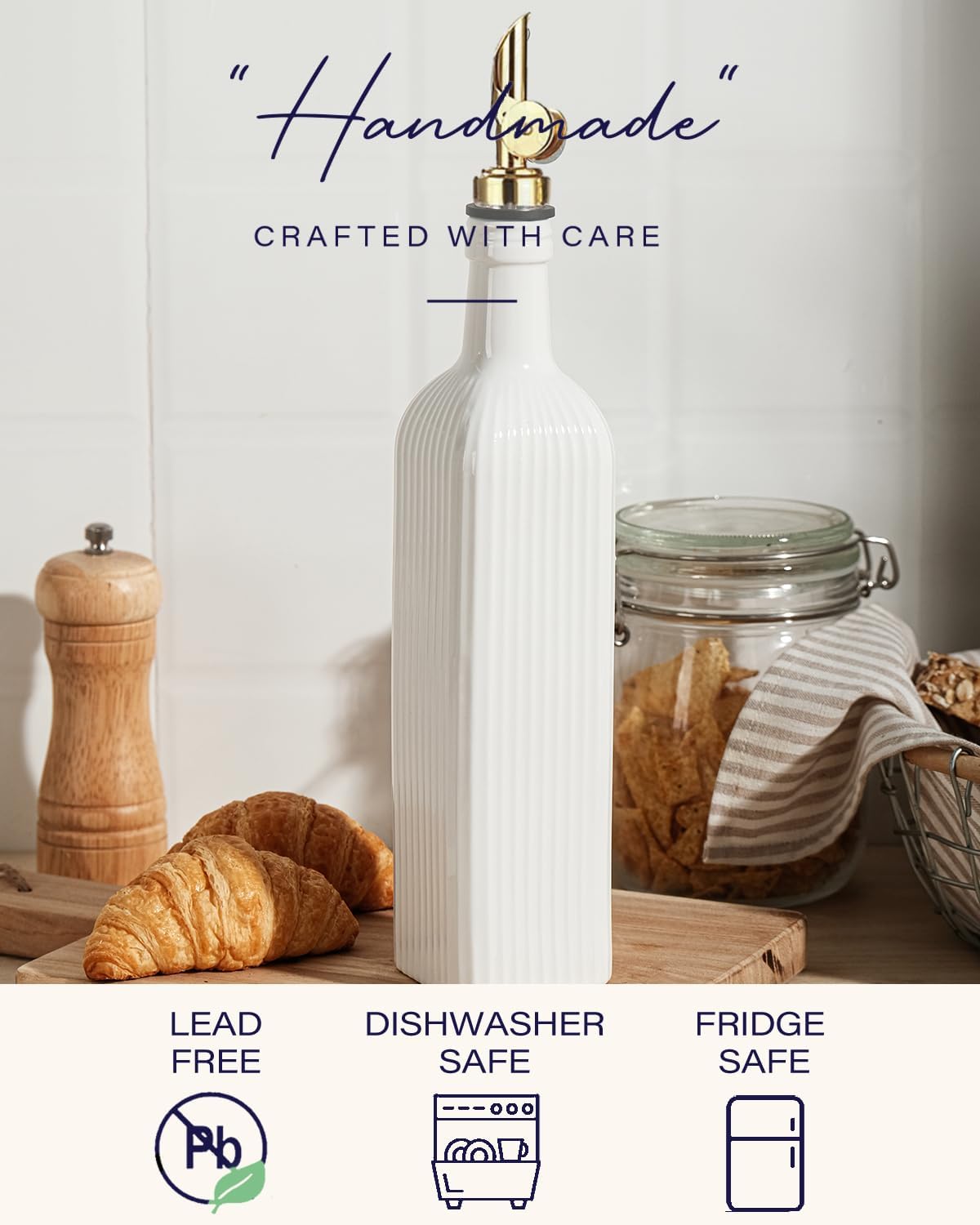 getstar 18 oz Olive Oil Dispenser Bottle for Kitchen, Ceramic Oil Bottle with Automatic Stainless Steel Pourer (Golden Pourer)